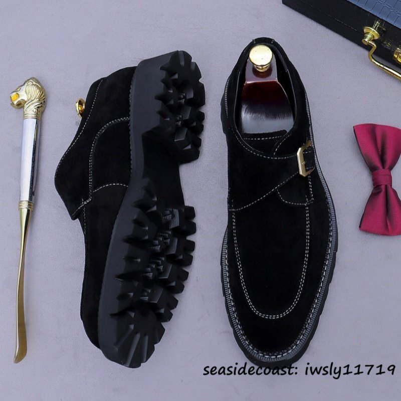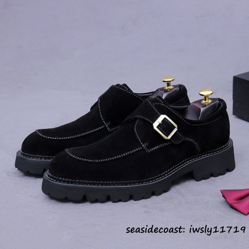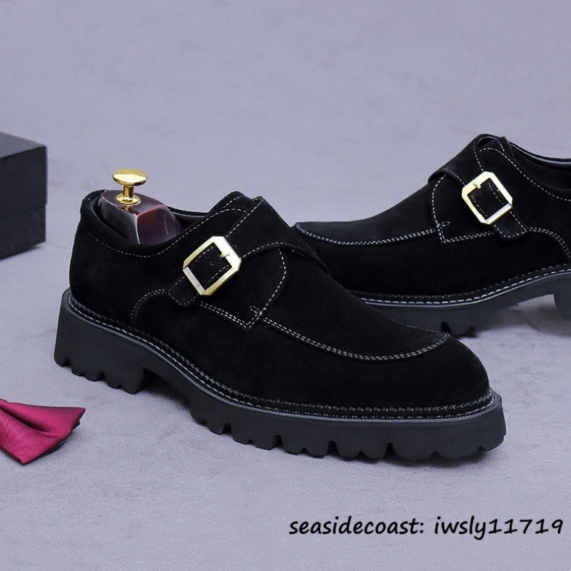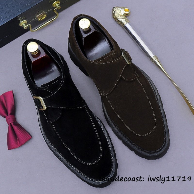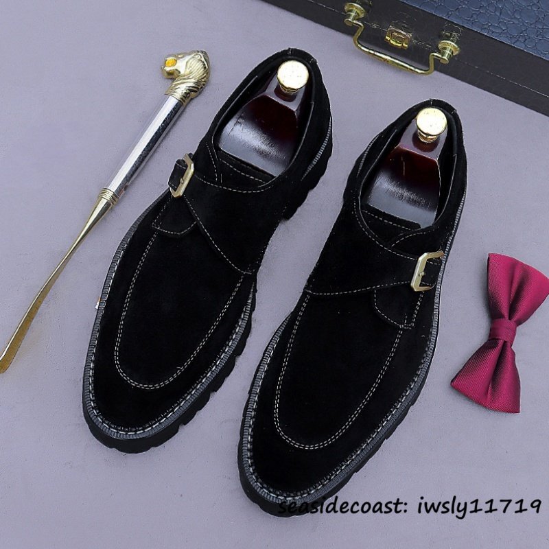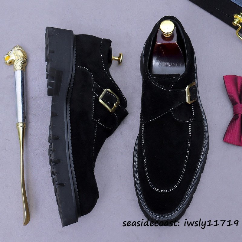 定価10万◆ビジネスシューズ スエード革 本革 レザーシューズ 職人手作り モンクストラップ 紳士靴 フォーマル革靴 牛革 ブラック 28.0cm