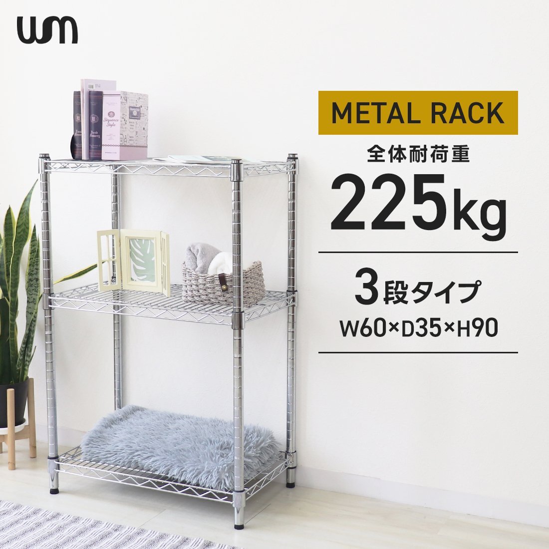 どんなお部屋にも合わせやすいスチールラックです。 ぐらつき防止アジャスター付き! クギやネジを使わずに簡単に組み立て出来ます! 棚の高さを自由に変えることができます。 一人暮らしのお部屋やリビング、キッチン、物置など場所を問わず活躍できます。 アパレルショップの店頭用やオフィスにも使用されています。 【仕様】 サイズ(約):幅60×奥行35×高さ90cm 耐荷重(約):(全体)225kg / (棚板1枚あたり)75kg 材質:スチール(クロームメッキ)、ABS樹脂 他 重量(約):6.8kg 【商品内容】 シェルフ(棚板) ×3 ポール(ジョイント式) ×4 スリーブ ×12 標準アジャスター ×4 |