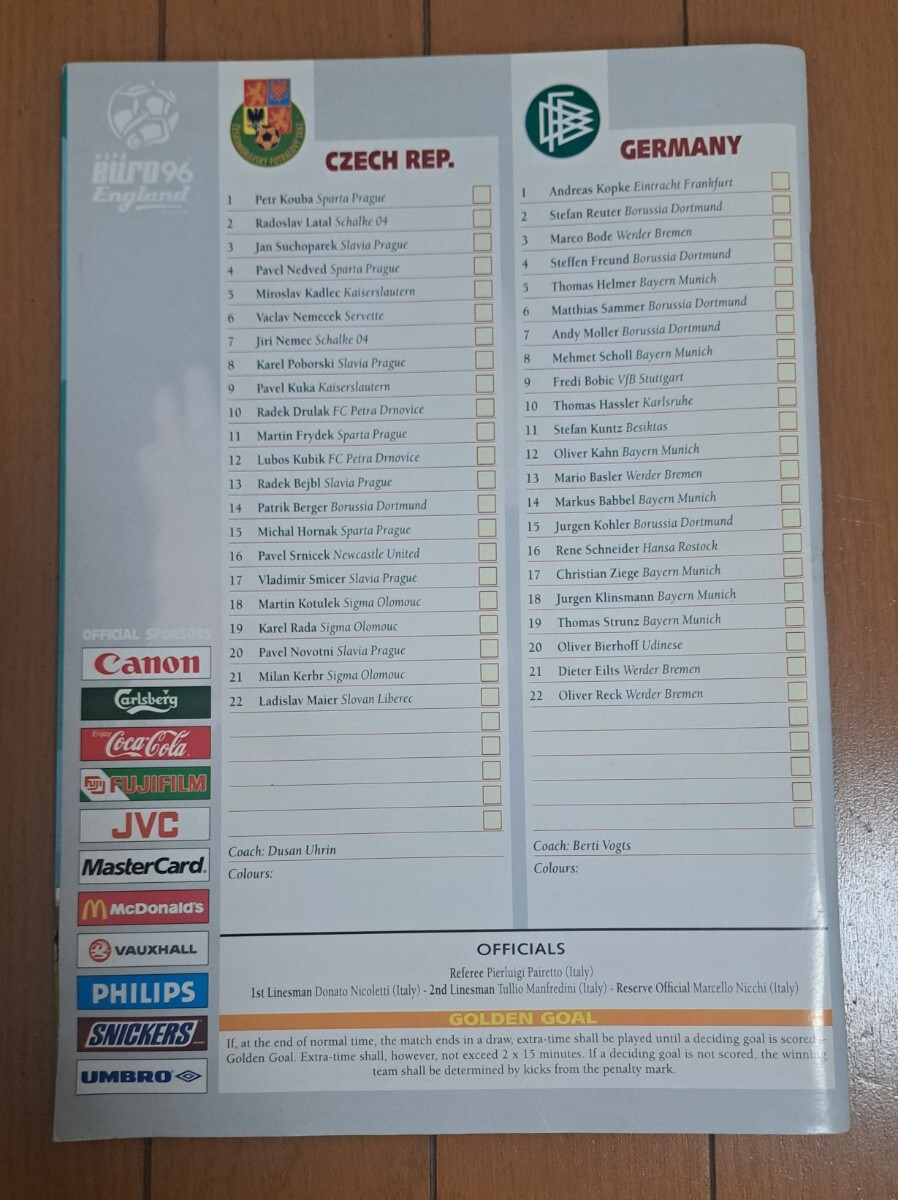 EURO96のオフィシャルマッチデープログラムです。整理のため出品いたします。