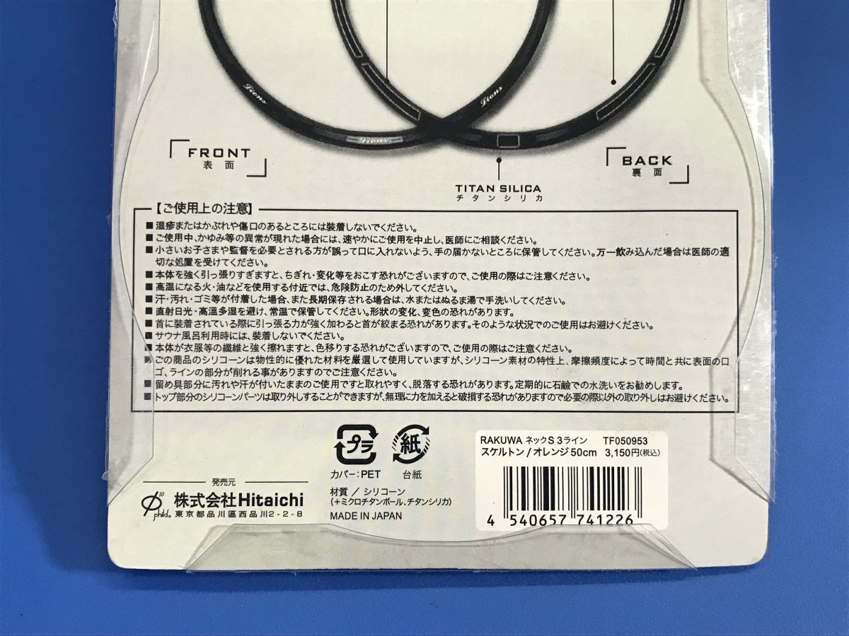 未使用【 Hitaichi 】CING NECKS 3LINE Lions ラクワネック スポーツ3ライン 45cm 赤 シリコン YP