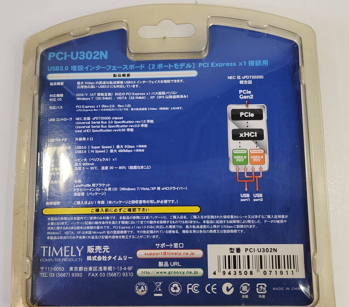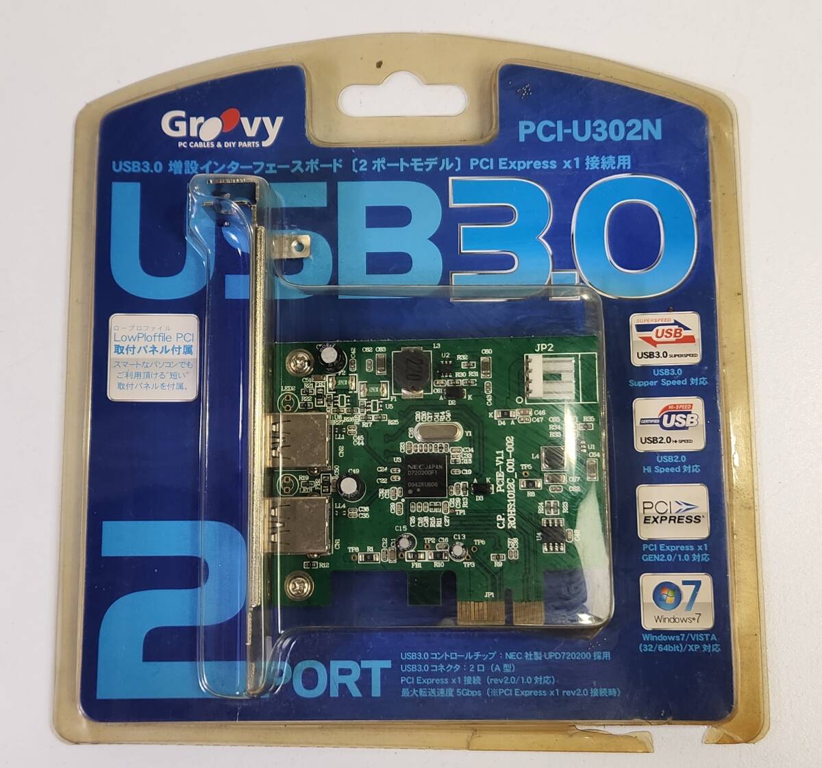 ▽□[未使用品]グルービー PCI Express(x1)スロット用USB3.0増設カード PCI-U302N