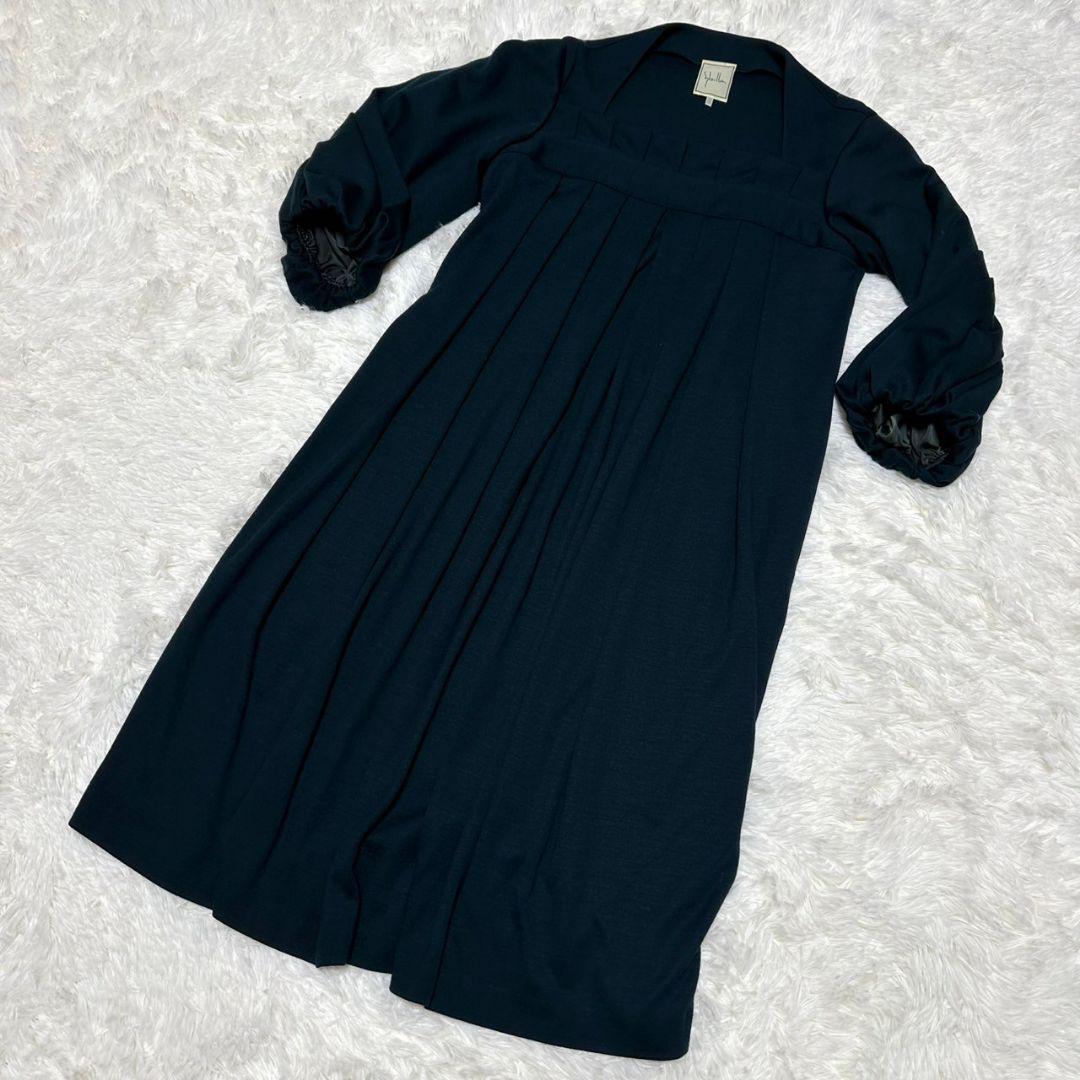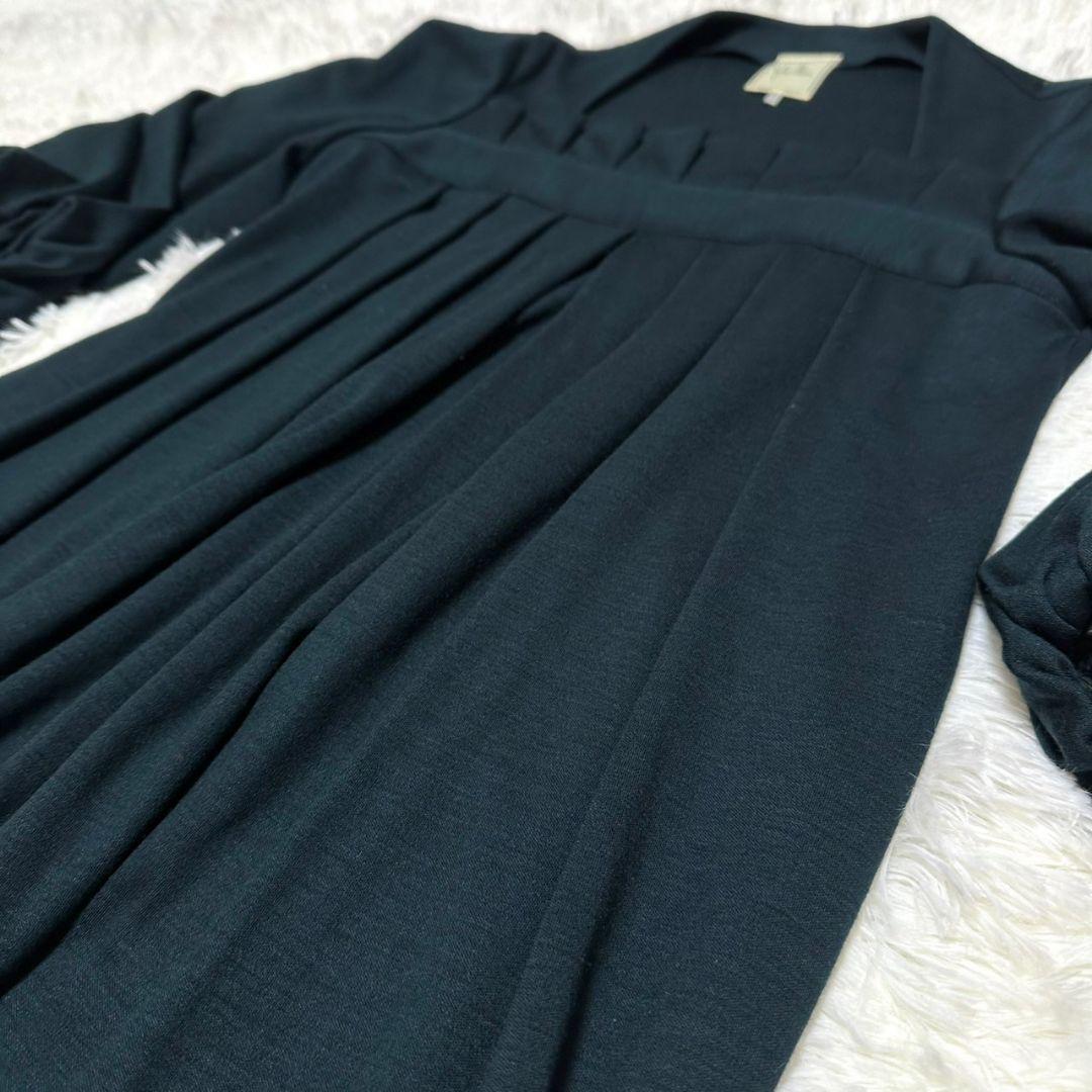 シビラ柔らかいダークグリーンの長袖プリーツワンピース。