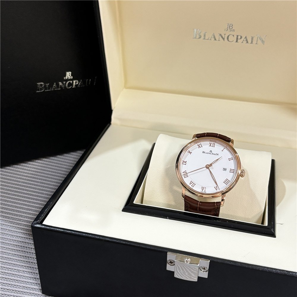 | 【 商品詳細】 |       ブラウン:Blancpain 型号:6651-3642-55B 素材: ステンレススチール ムーブメント: 自動巻き ベルト:ブラウン(レザー) 文字盤:白 ベゼル:ゴールド ケースサイズ:40mm 腕周り:約17-21cm 付属品:ブランド保存箱 美しさと耐久性のために、ベルトには高圧処理が施されています。新しいベルトは、最初は少し硬くなりますが、しばらくすると柔らかくなります。 時計の時間を調整するときは、時計の針を時計回りに調整するのが正解です。  |