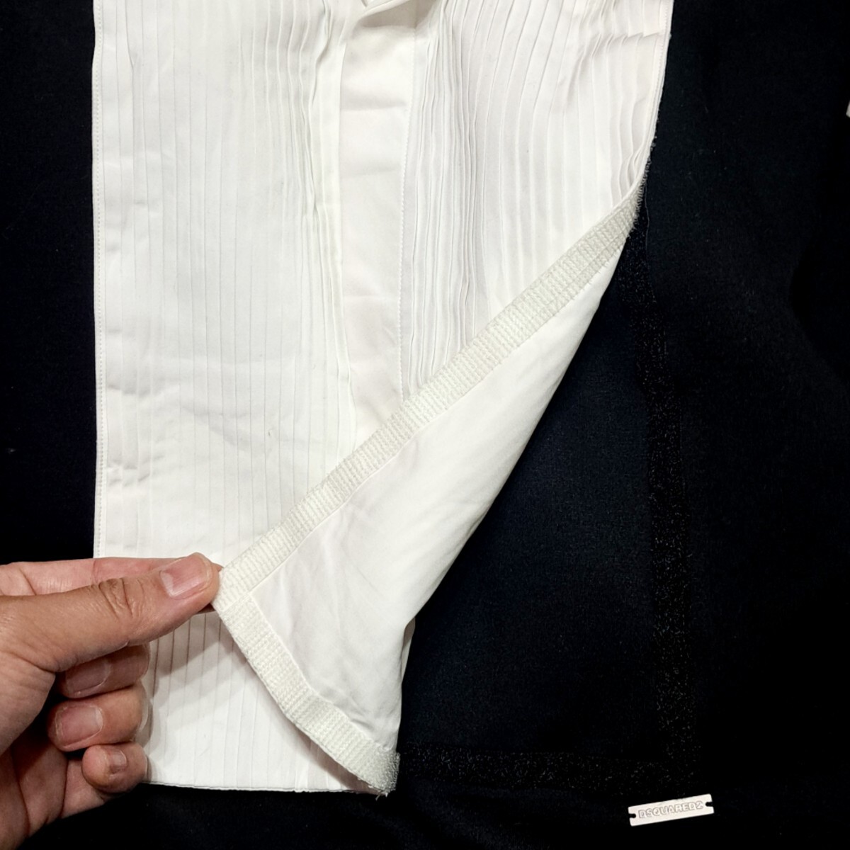 プリーツシャツはマジックテープにより着脱可能となっている。