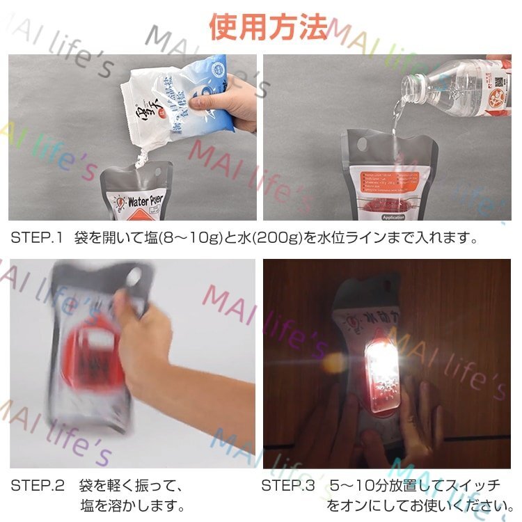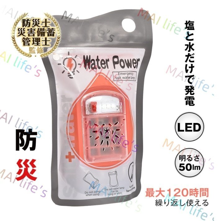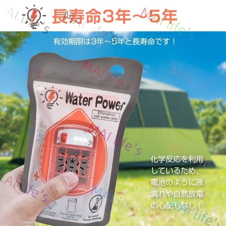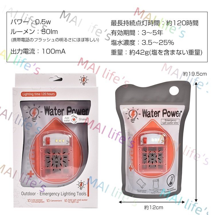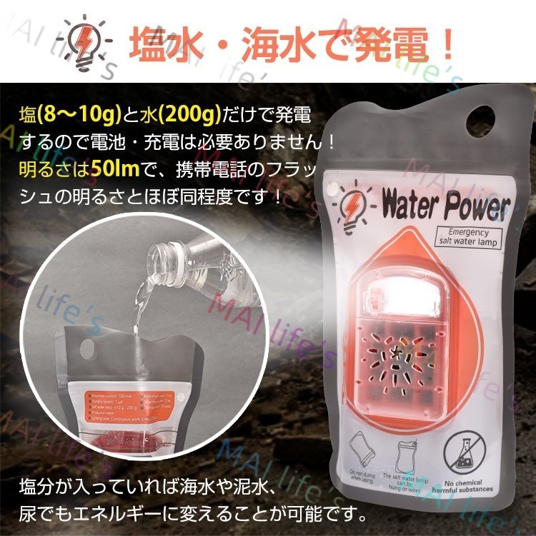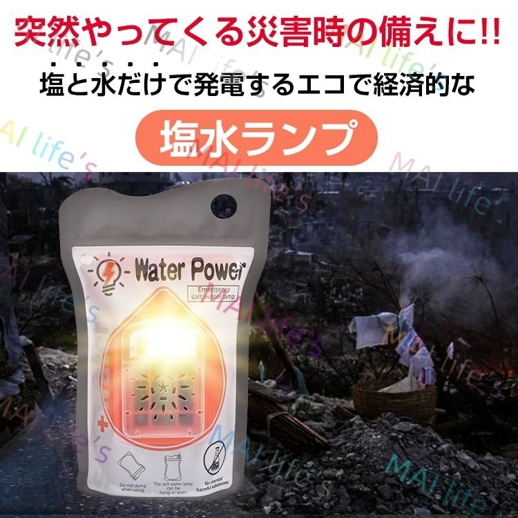 塩水ランプ 災害用ライト 非常用照明灯 最大120時間 電池充電不要 軽量 コンパクト 塩水海水発電 アウトドア キャンプ 夜釣り 緊急用 停電対策 防災グッズ