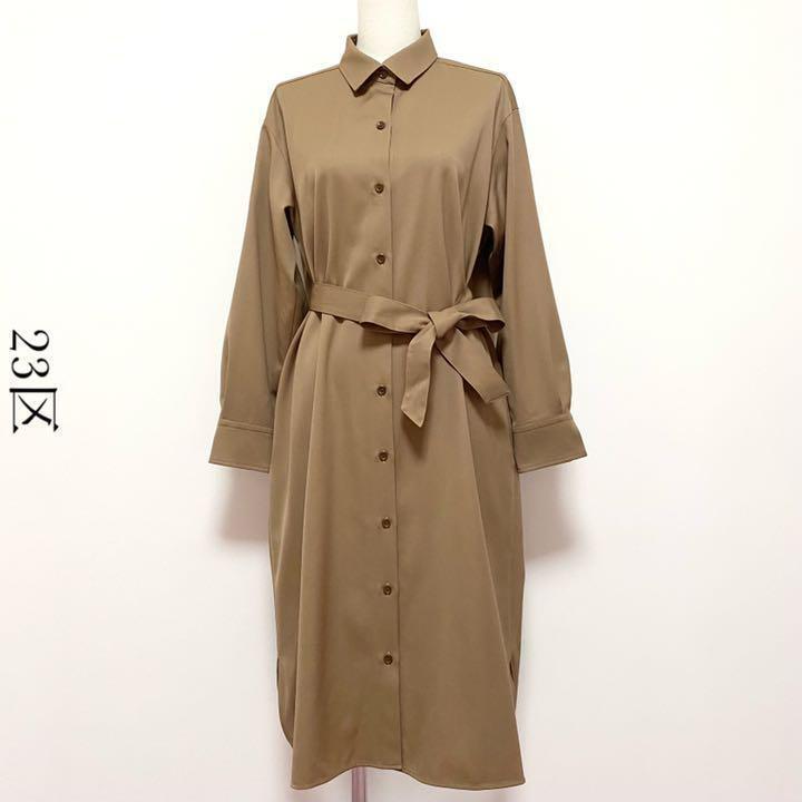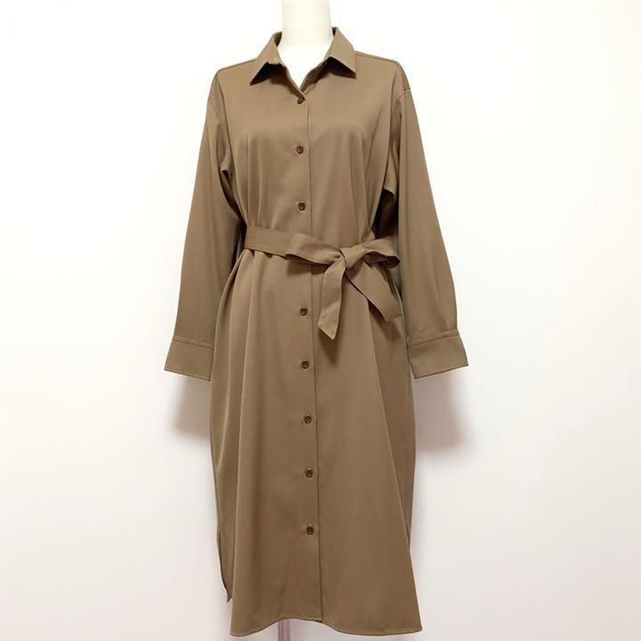 ウールギャバジンロングシャツワンピース