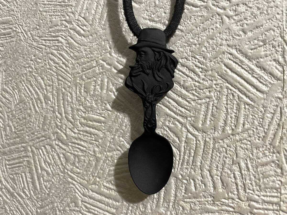 小振りなスプーン型のフォルムに、たばこを吸う山本耀司の横顔が象られたクールなデザイン、
