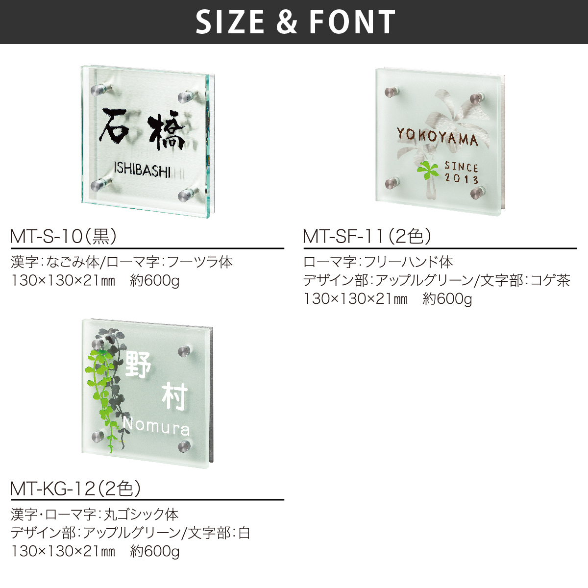 | 商品詳細 | 13×13cmのスモールサイズのガラスを使ったミントな清涼感が心地よい表札です。 |