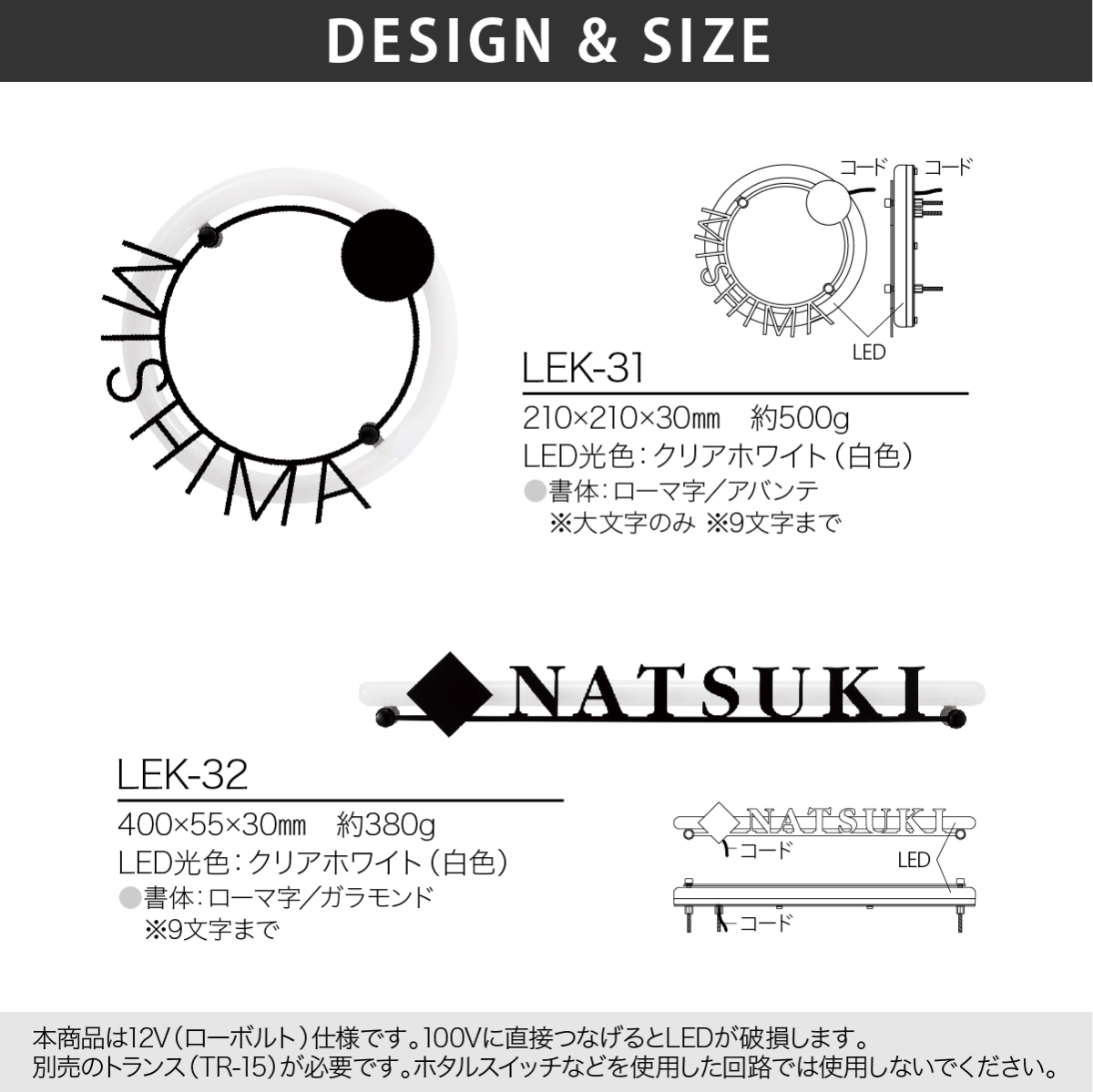 商品サイズ | LEK-32:約400×55×30mm 約380g LEK-31:約210×210×30mm 約500g |