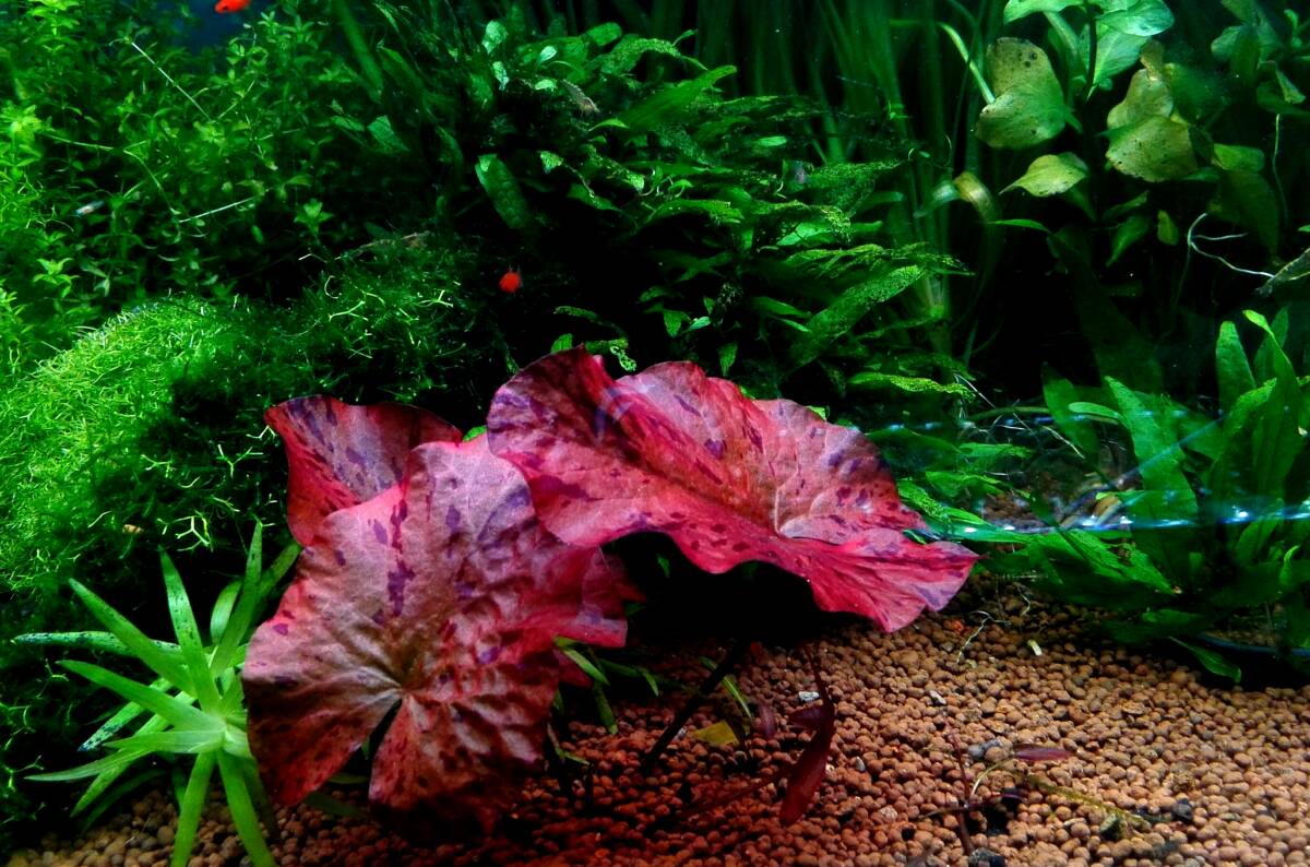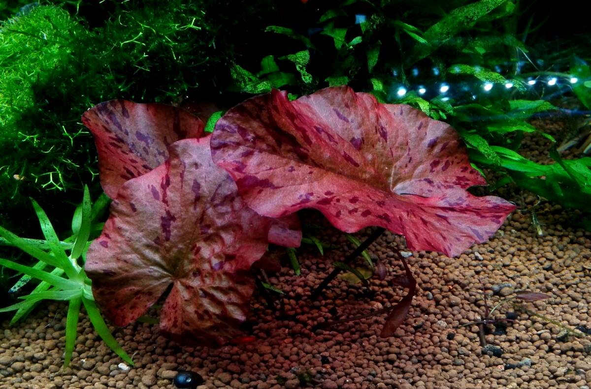 レイアウト水槽育成中のレッドタイガーロータス 撮影時実長13xh10cmの画像の株をお送りいたします。