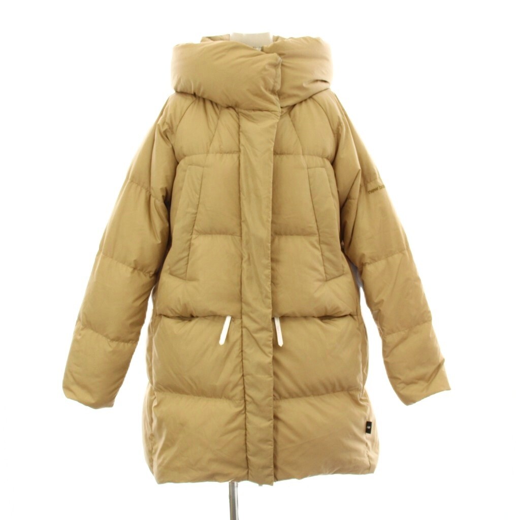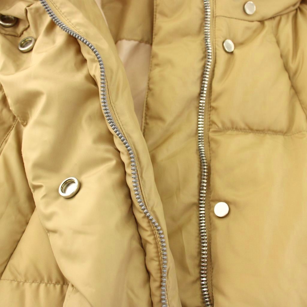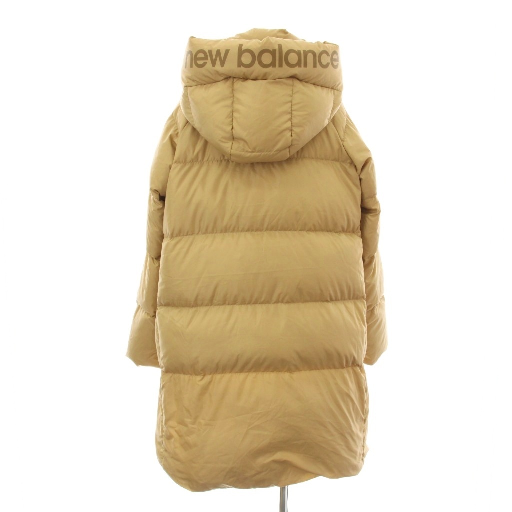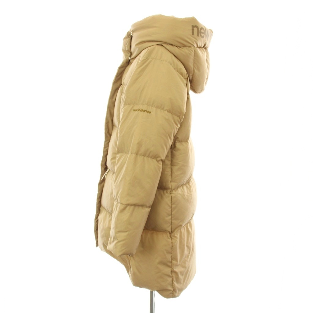 ニューバランス NEW BALANCE ダウンコート ロング ショート フード 2WAY ジップアップ ロゴ プリント M ベージュ JWJL9672
