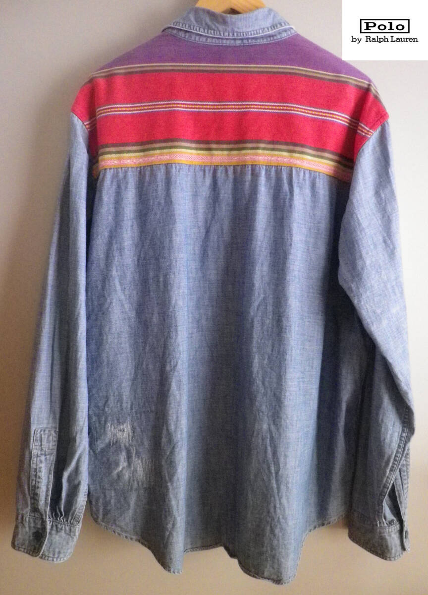 POLO RALPH LAUREN ポロラルフローレン VINTAGE ユーズド加工 ネイティブ柄 ヨーク切り返し シャンブレーシャツ XL