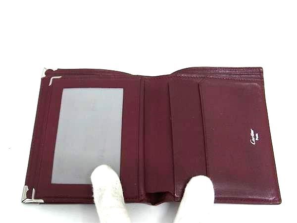 Cartier カルティエ レザー 二つ折り 財布 ウォレット 札入れ メンズ レディース ボルドー系 DI4580