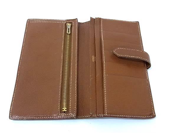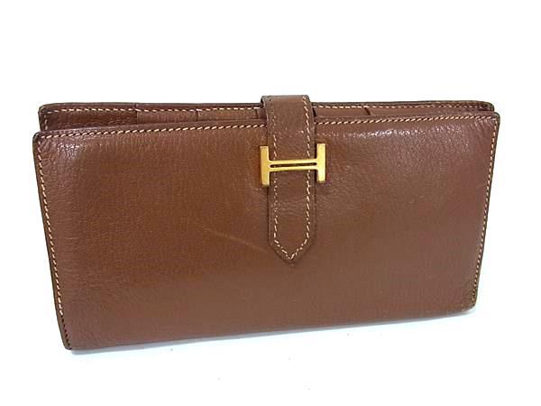 1円 HERMES エルメス ベアン クラシック シェーブル ゴールド金具 二つ折り 長財布 ウォレット 小銭入れ □I刻印 ブラウン系 BN5324