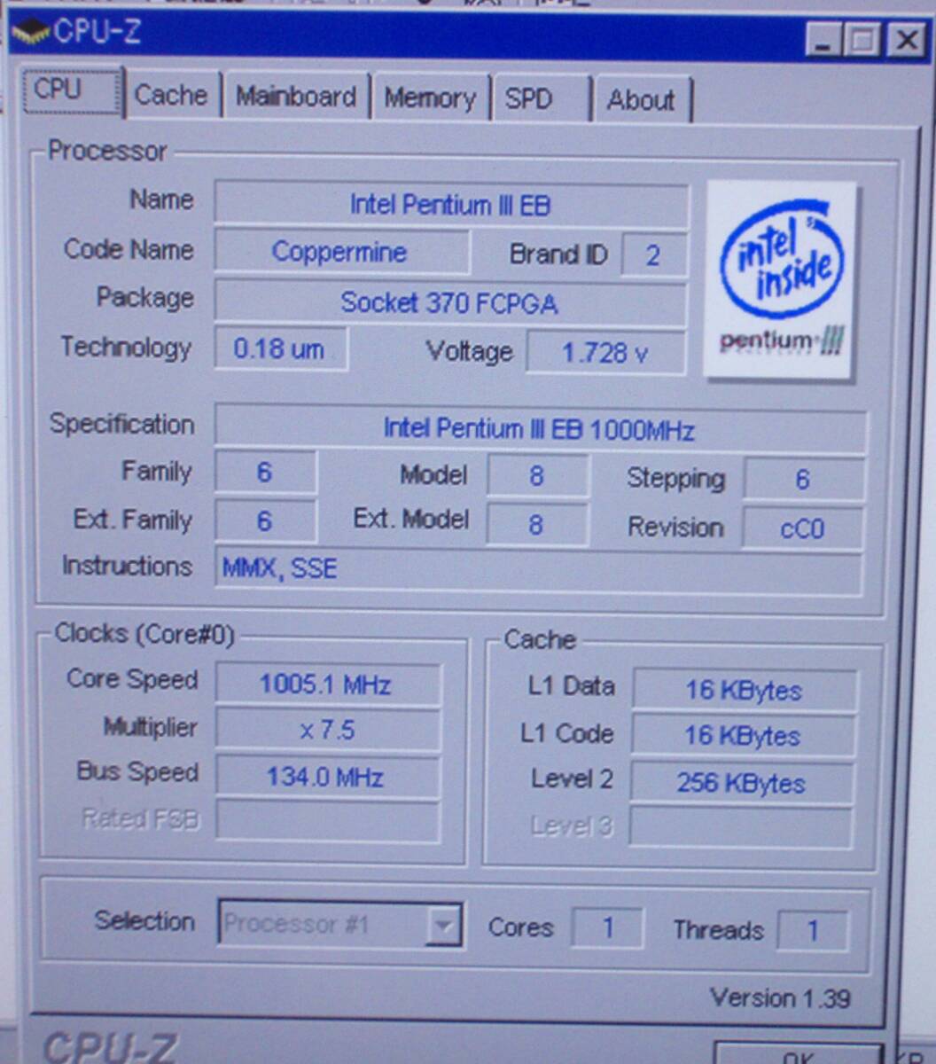 PentiumⅢ 1GHz/FSB133MHz/256KB/Socket370/SL4MF/Coppermine