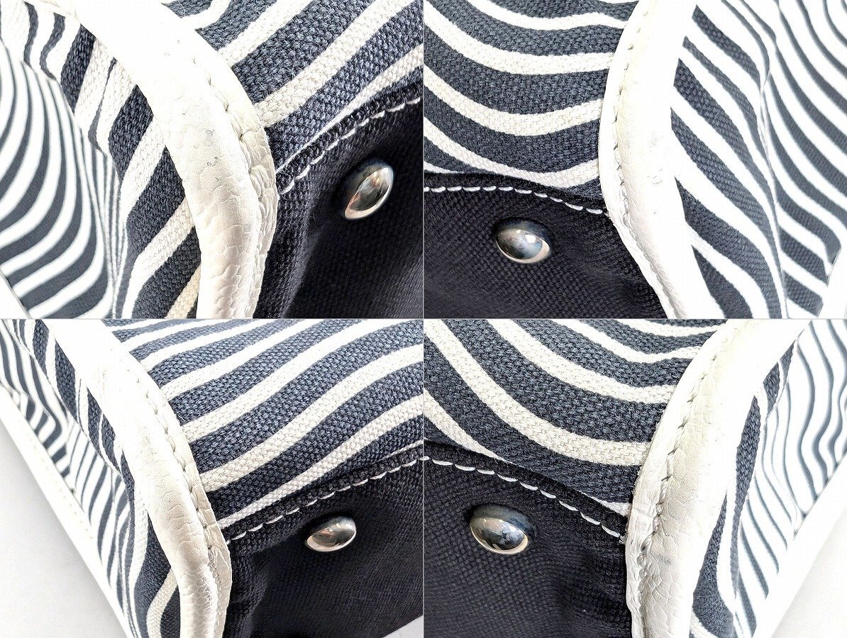 中古品です。 外観に強い使用感は無く、きれいな状態といえますが、表面各所やそれぞれの角にごく小さなスレがあります。 ハンドルやバッグ側面など、皮革部品にわずかな黒ずみがあります。 バッグ内装のナンバーシールや革紐の貼り合わせ箇所など、接着材の黄ばみがみられます。 写真や記載にない不具合があるかもしれませんが、現状渡しにてご容赦ください。 完全な状態をお求めの方、細かい点が気になる方はご入札をお控えください。 ノークレーム・ノーリターンでお願いいたします。 |