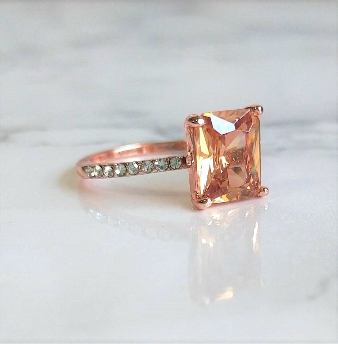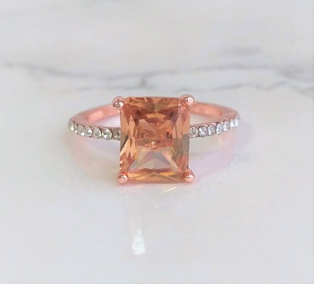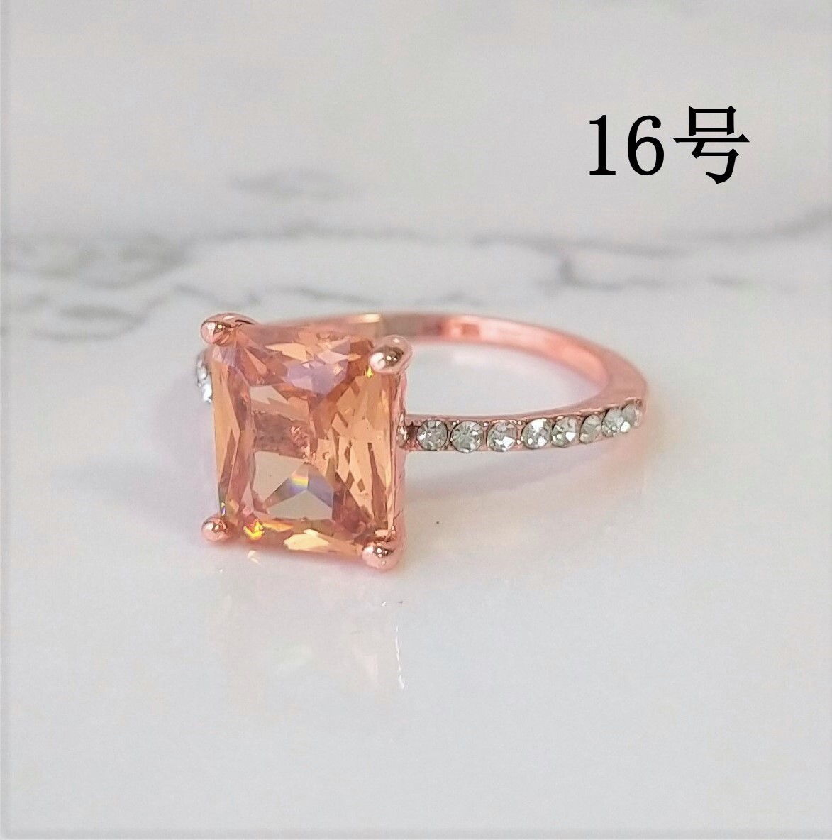 スクエアリング ピンクゴールド 16号 ジルコニア 普段使い 指輪 大粒 スクエア リング パパラチアサファイアカラー