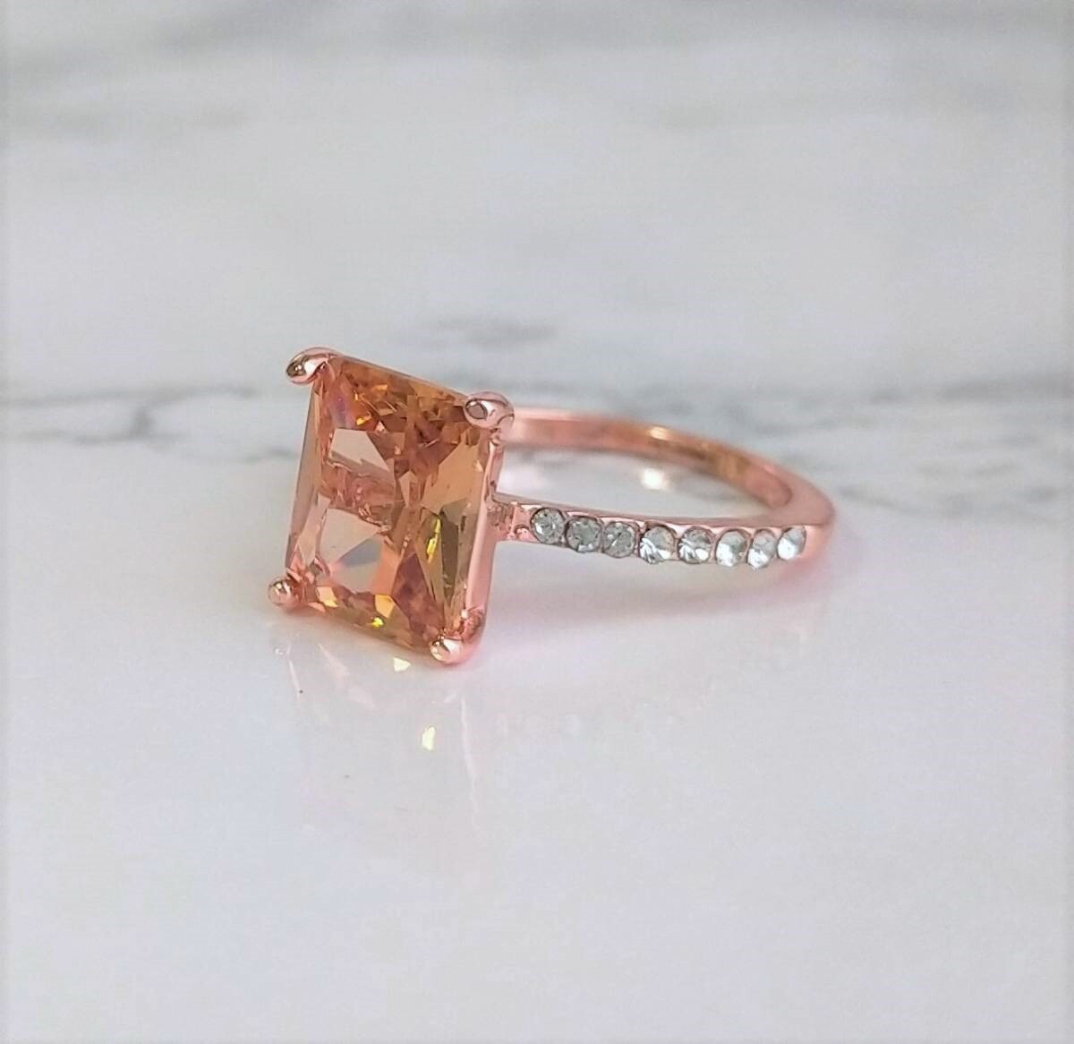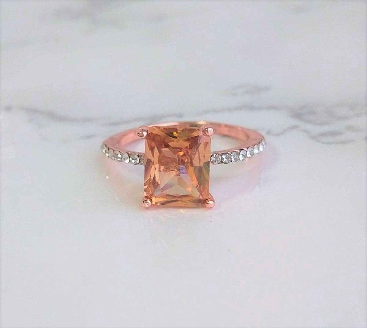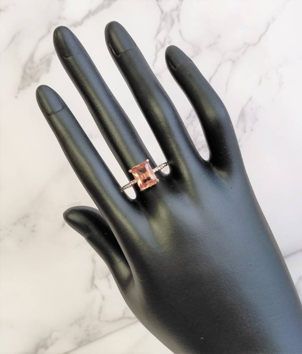 スクエアリング ピンクゴールド 16号 ジルコニア 普段使い 指輪 大粒 スクエア リング パパラチアサファイアカラー