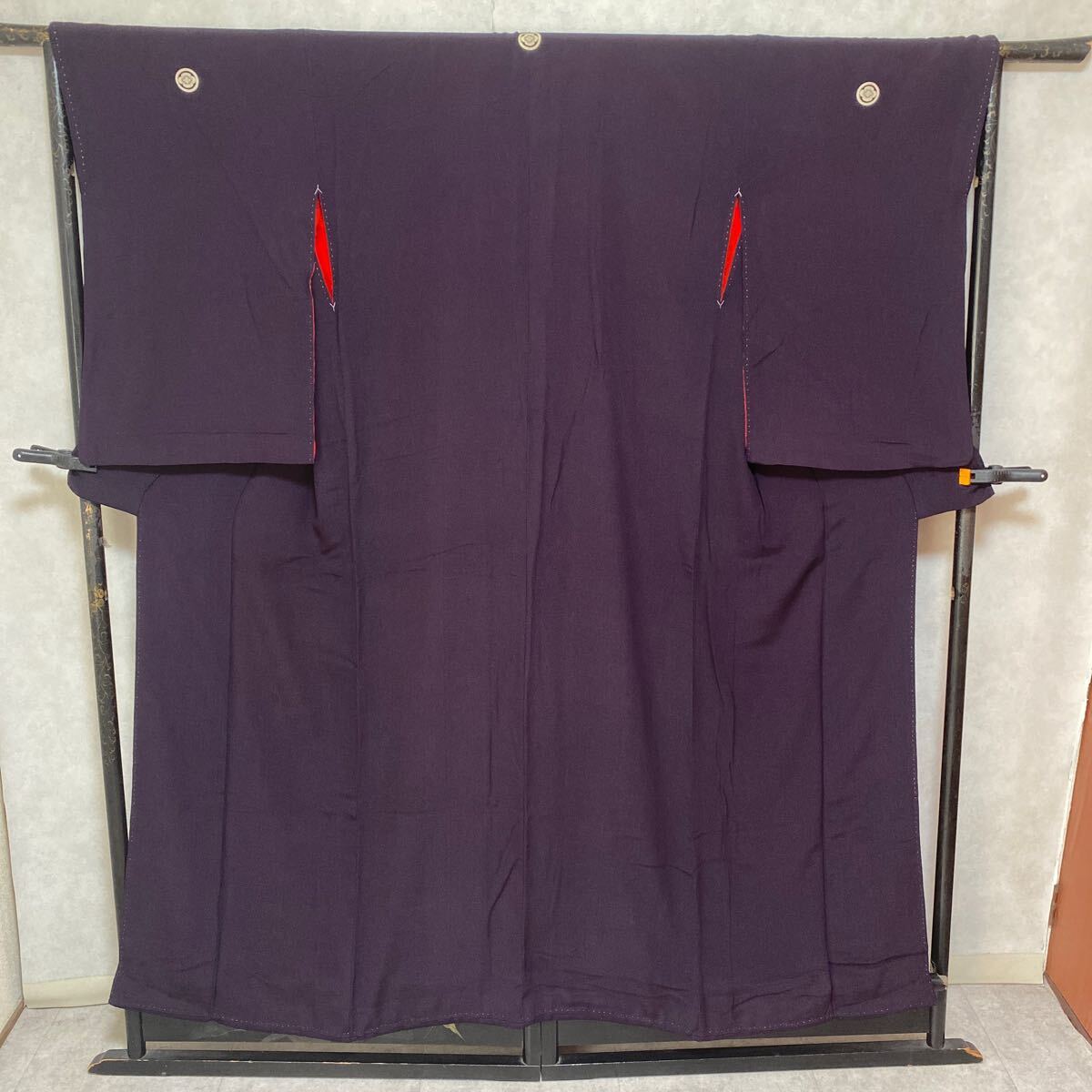 アンティーク 着物 色無地 三つ紋 準礼装 紫色 正絹 昭和レトロ 大正ロマン モダン 和洋折衷コーデ リメイク け05-12y