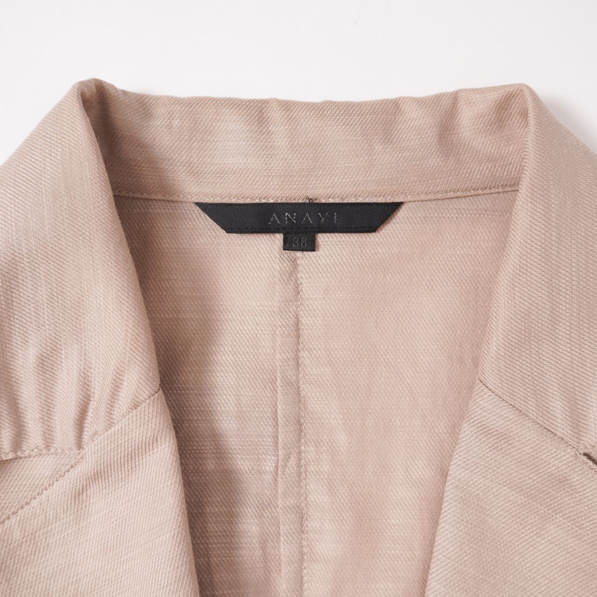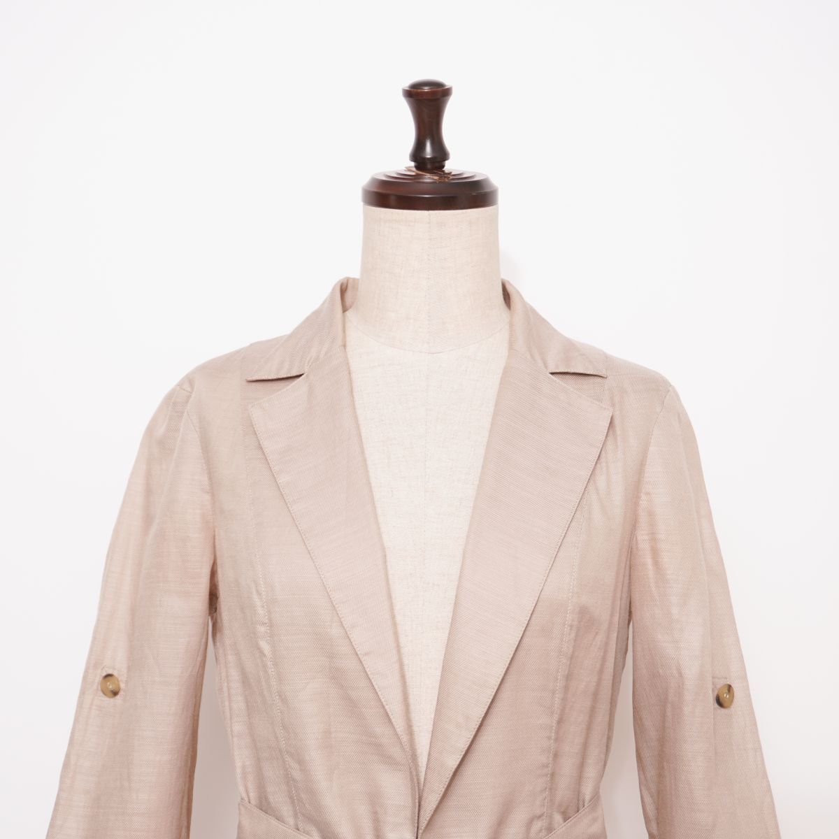美品 ANAYI アナイ ウエストリボン七分袖サマージャケット 薄手 リネン混 レディース ベージュ グレージュ サイズ38*GD95