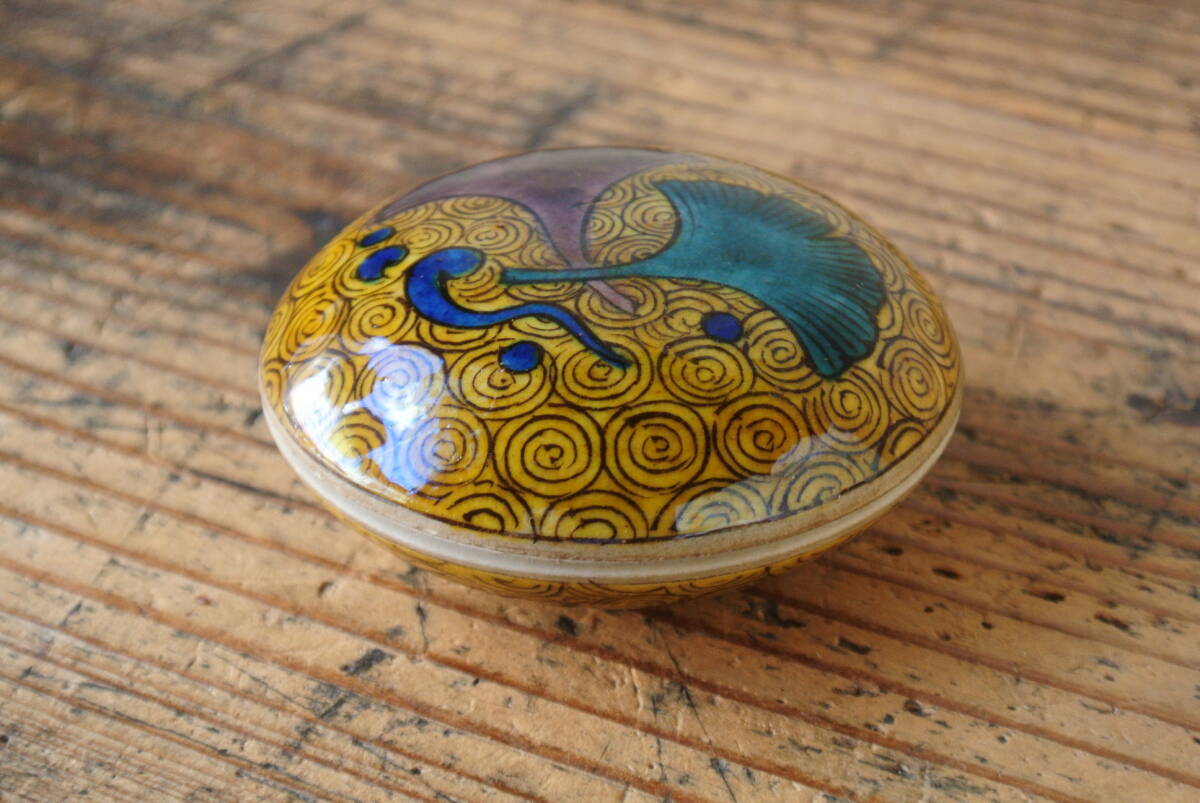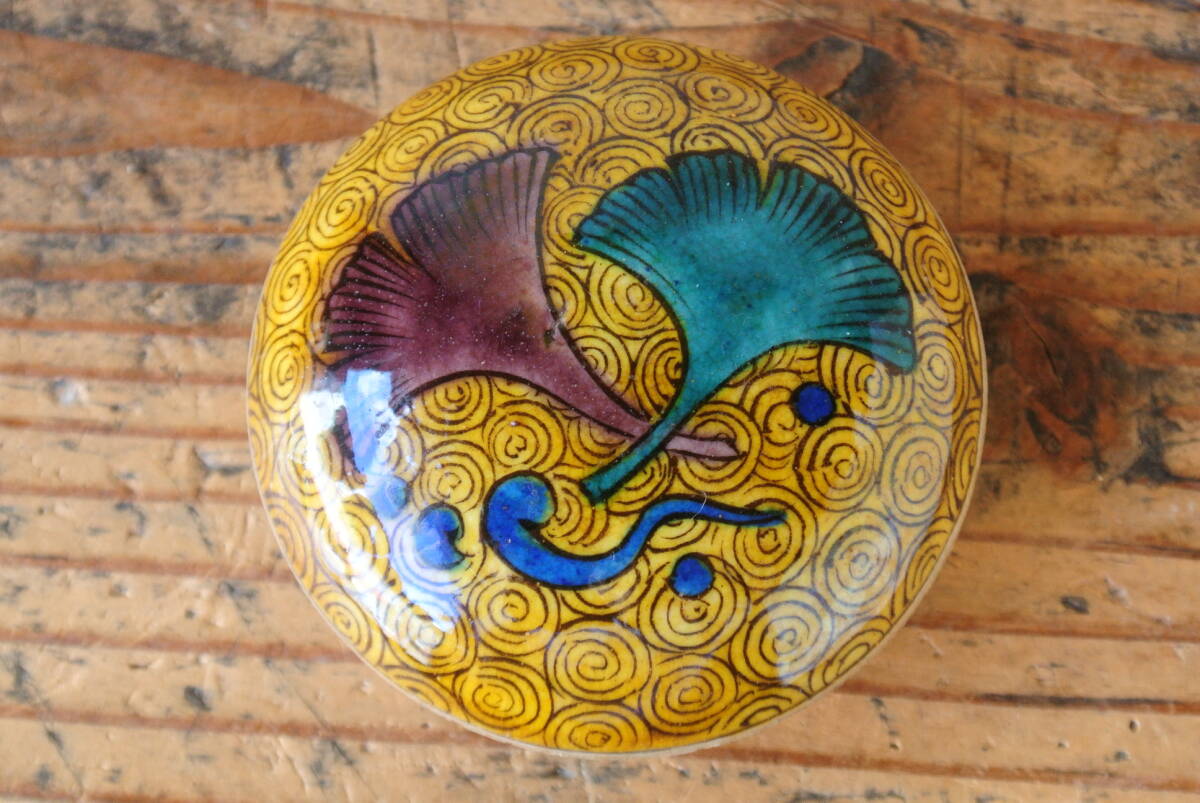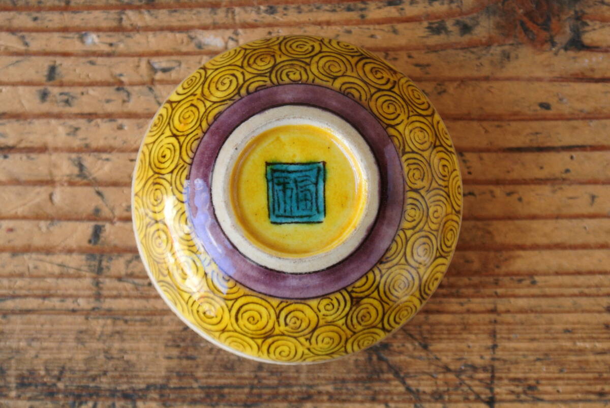時代 青手九谷 角福 銀杏渦文香合 検】茶道具