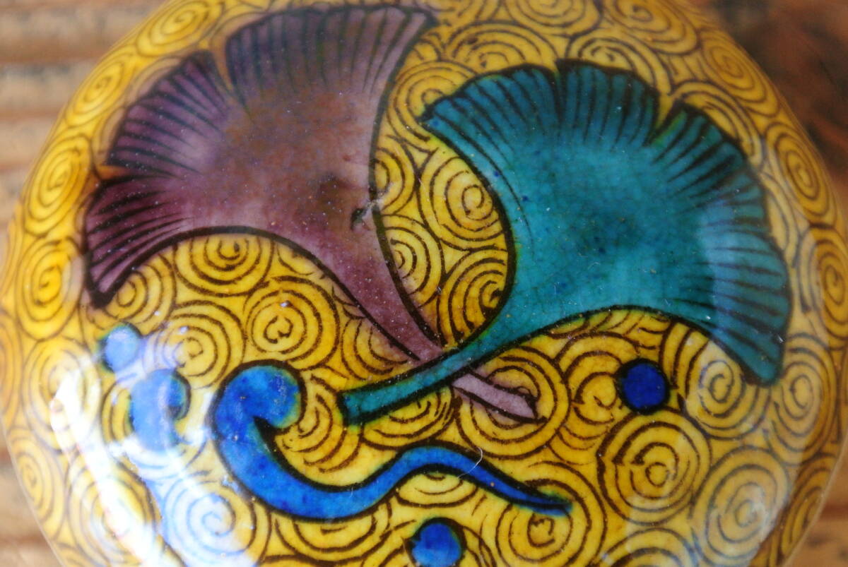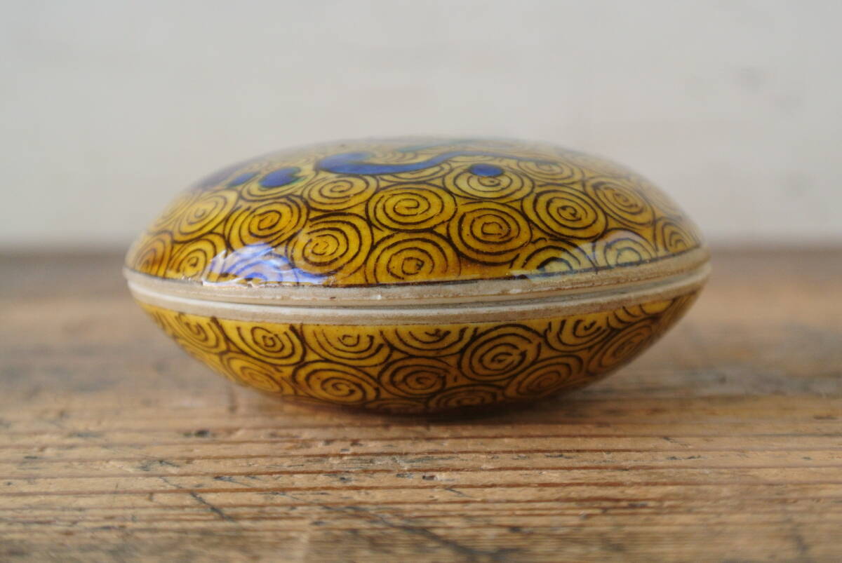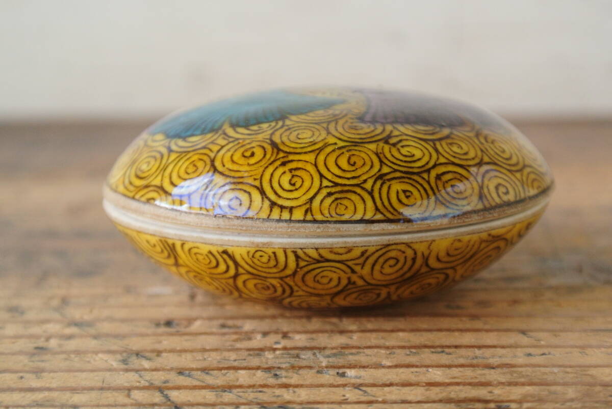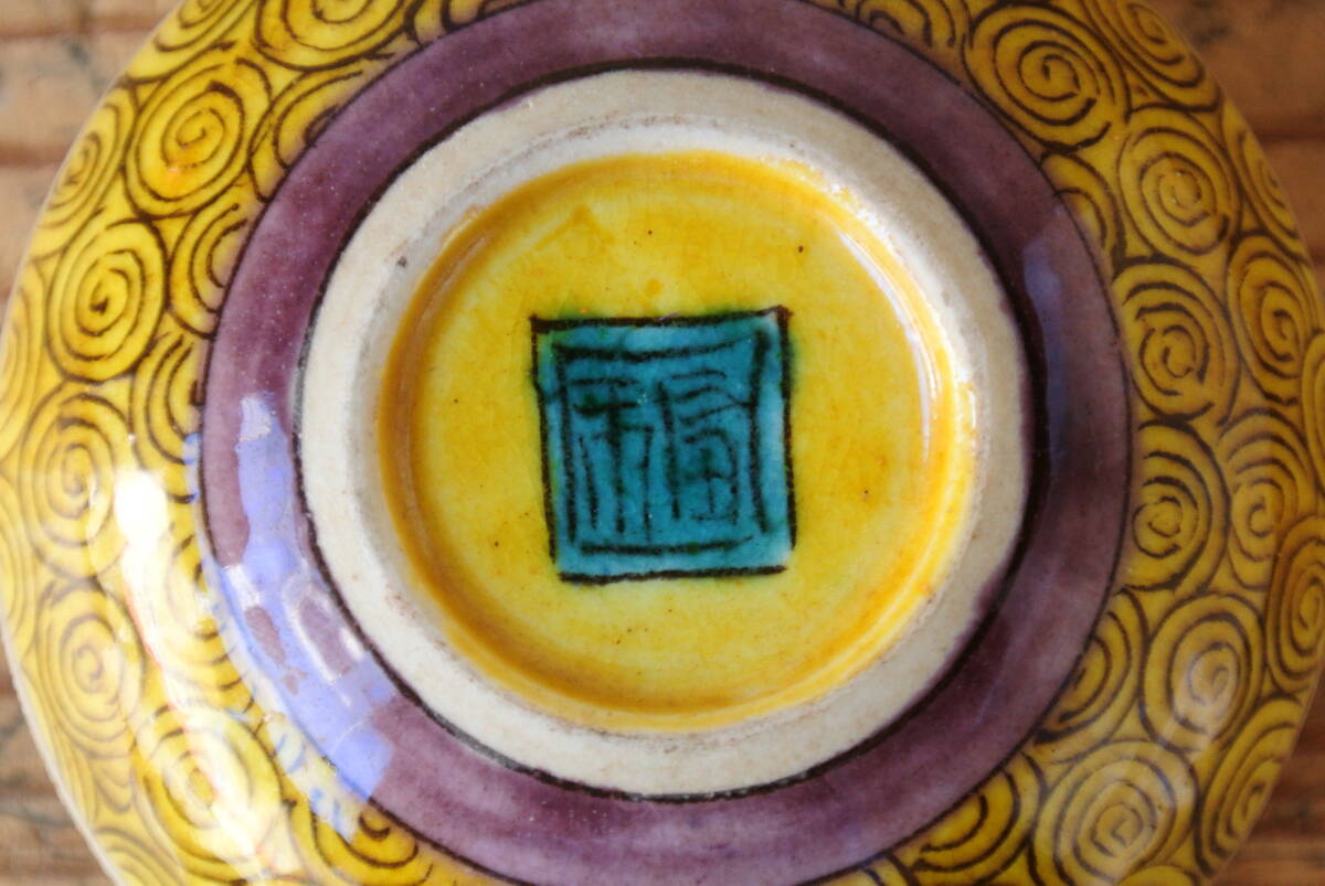 時代 青手九谷 角福 銀杏渦文香合 検】茶道具