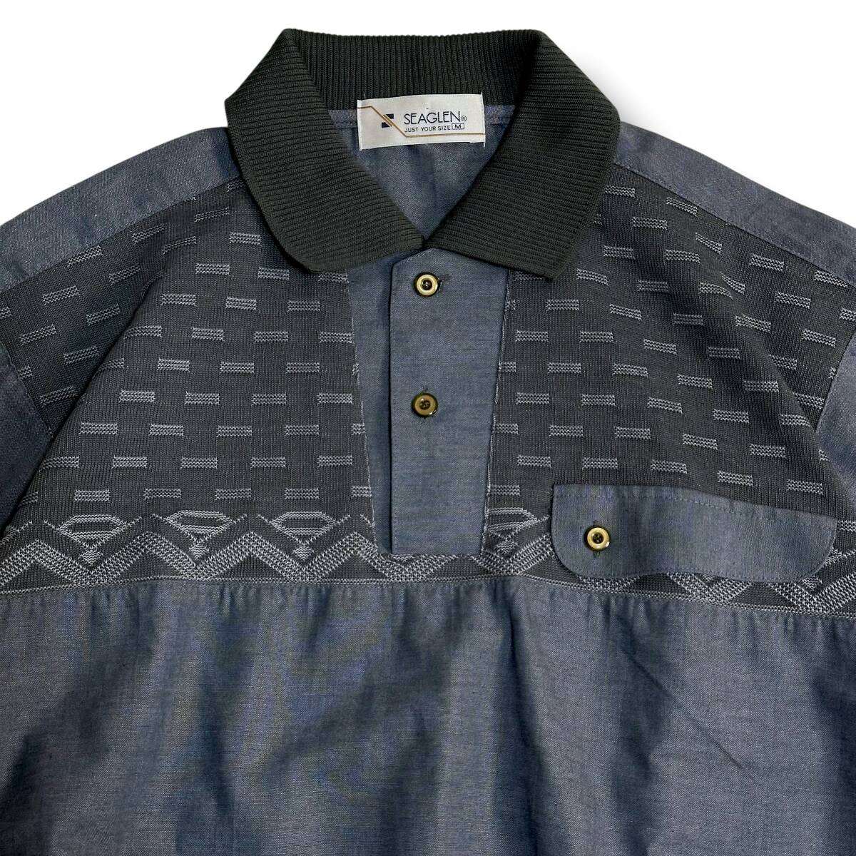 美品 希少【SEAGLEN】VINTAGE 80s 90s 3D 立体 ニット調切替 ビンテージポロシャツ 半袖 昭和レトロ オールド 古着