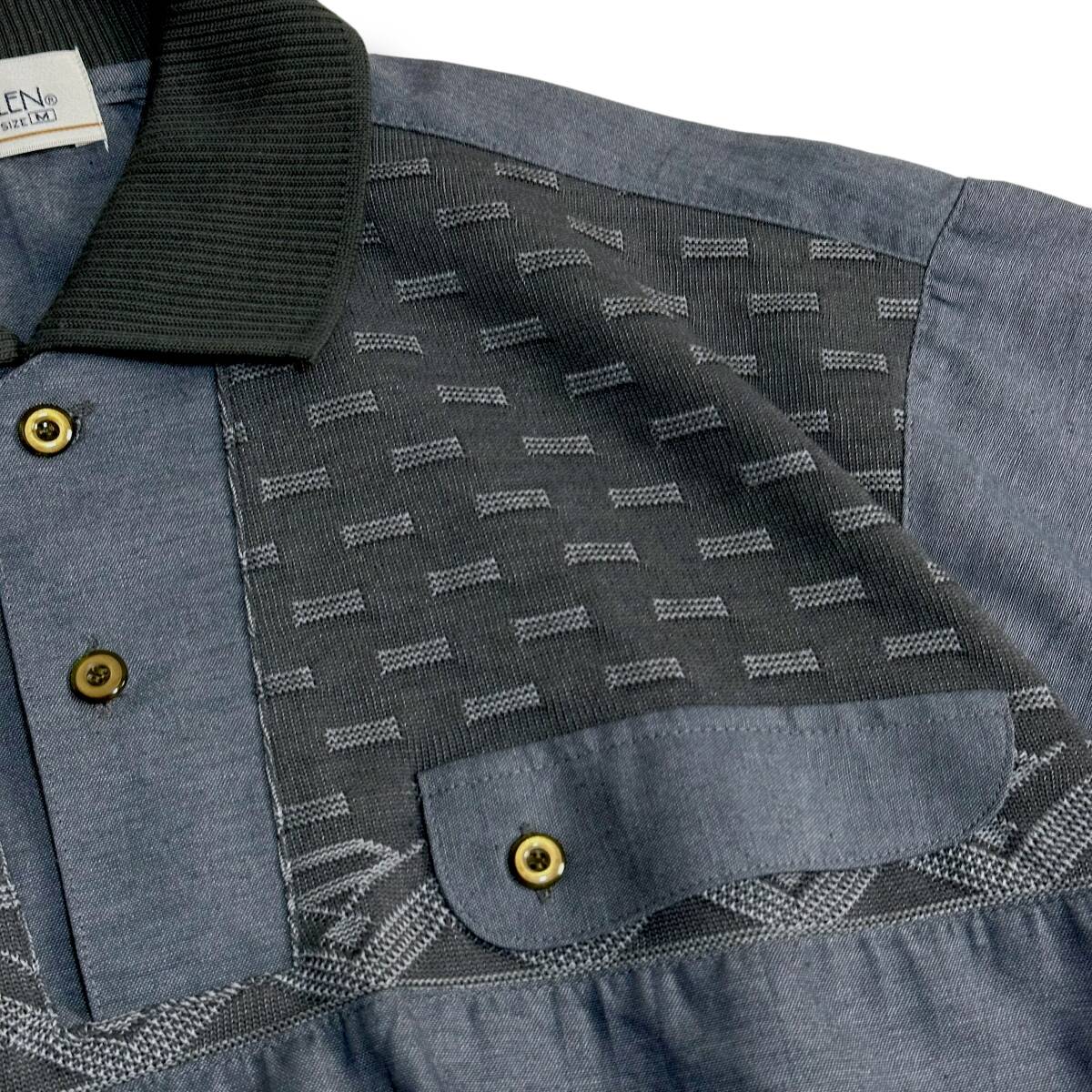 ニット地調の生地との切替デザインのレトロビンテージポロシャツ
