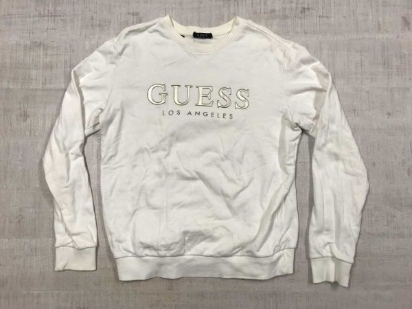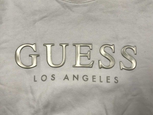 ゲス GUESS アメカジ LA ストリート スポーツ 立体 メタリックロゴ プリント スウェット レーナー メンズ コットン100% M 白 です。