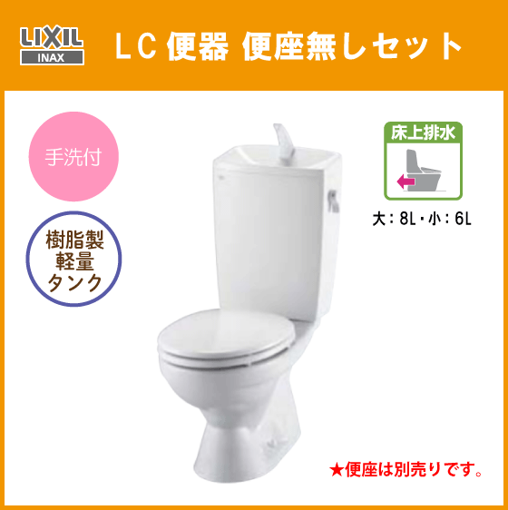 便器 LC便器(手洗付・床上排水) 便座なしセット C-180P,DT-4890 リクシル イナックス LIXIL INAX ★