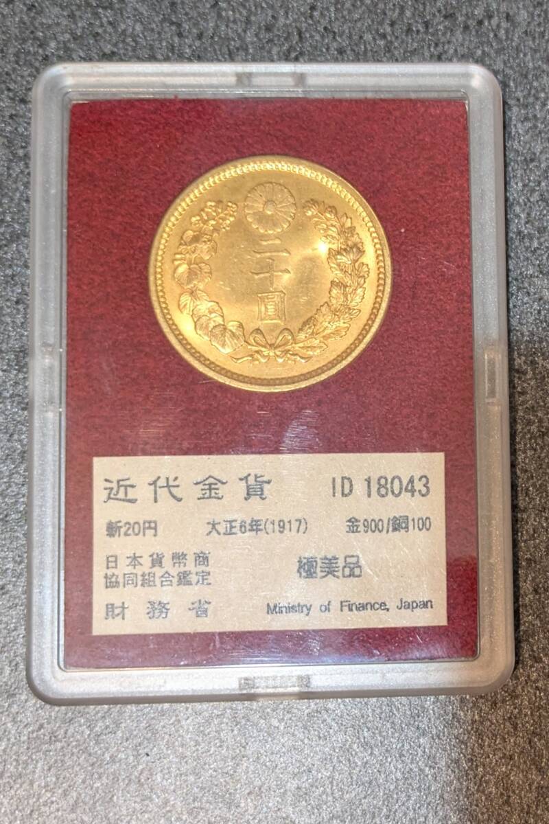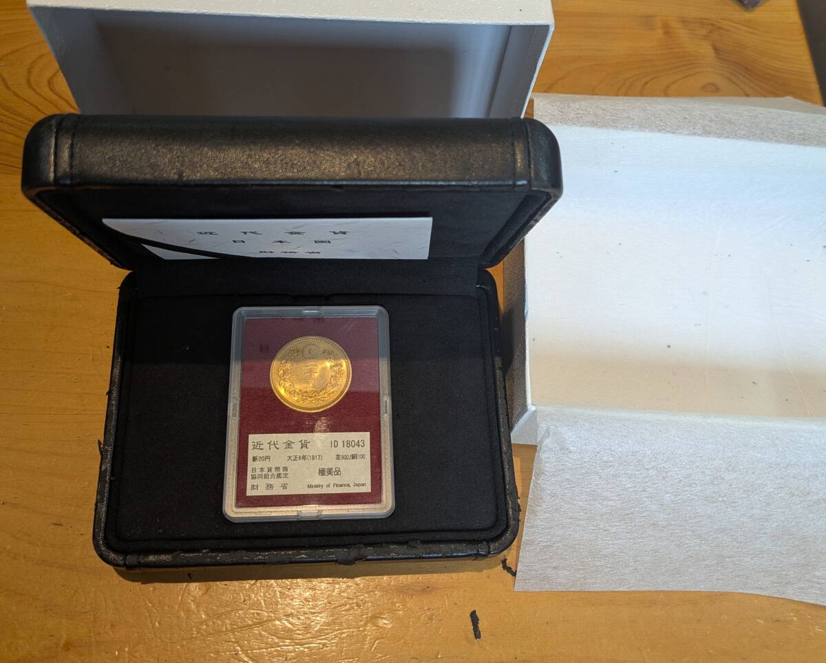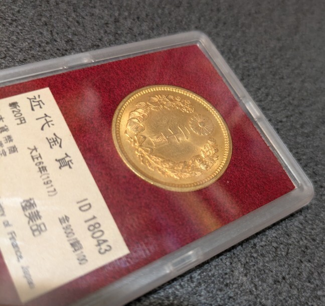 【動画あり】大正6年(1917) 日本 新20円金貨 財務省放出 極美品、箱、ケース、説明書付 二十円 CAG MS64