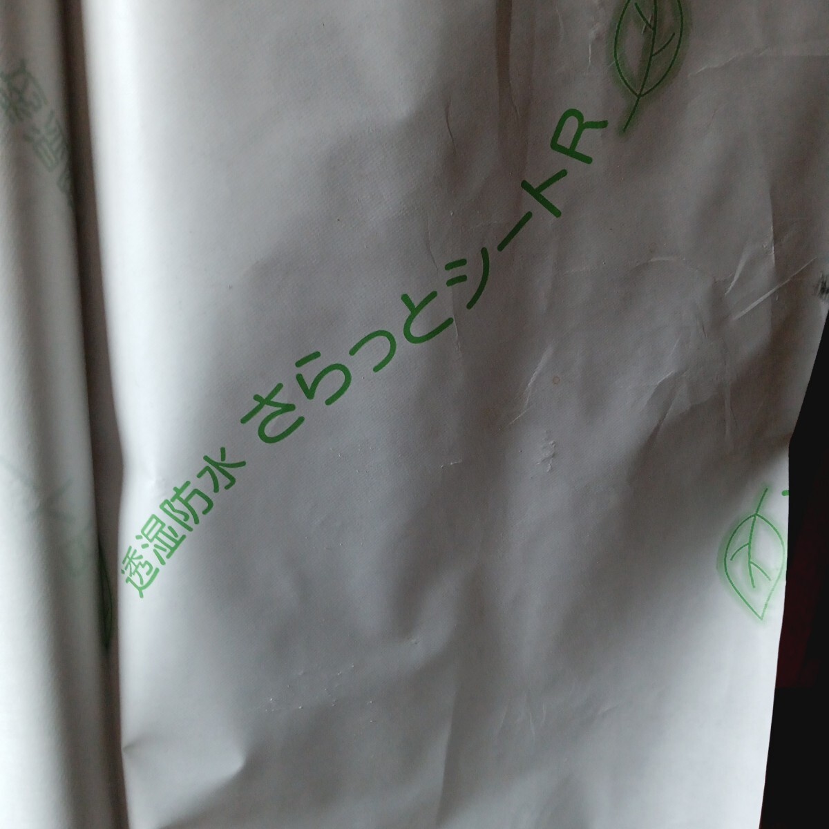 残りは、見た感じ15mから20mだと思います。ダイケンのさらっとシート、です。透湿防水シートです。簡易梱包での発送です。