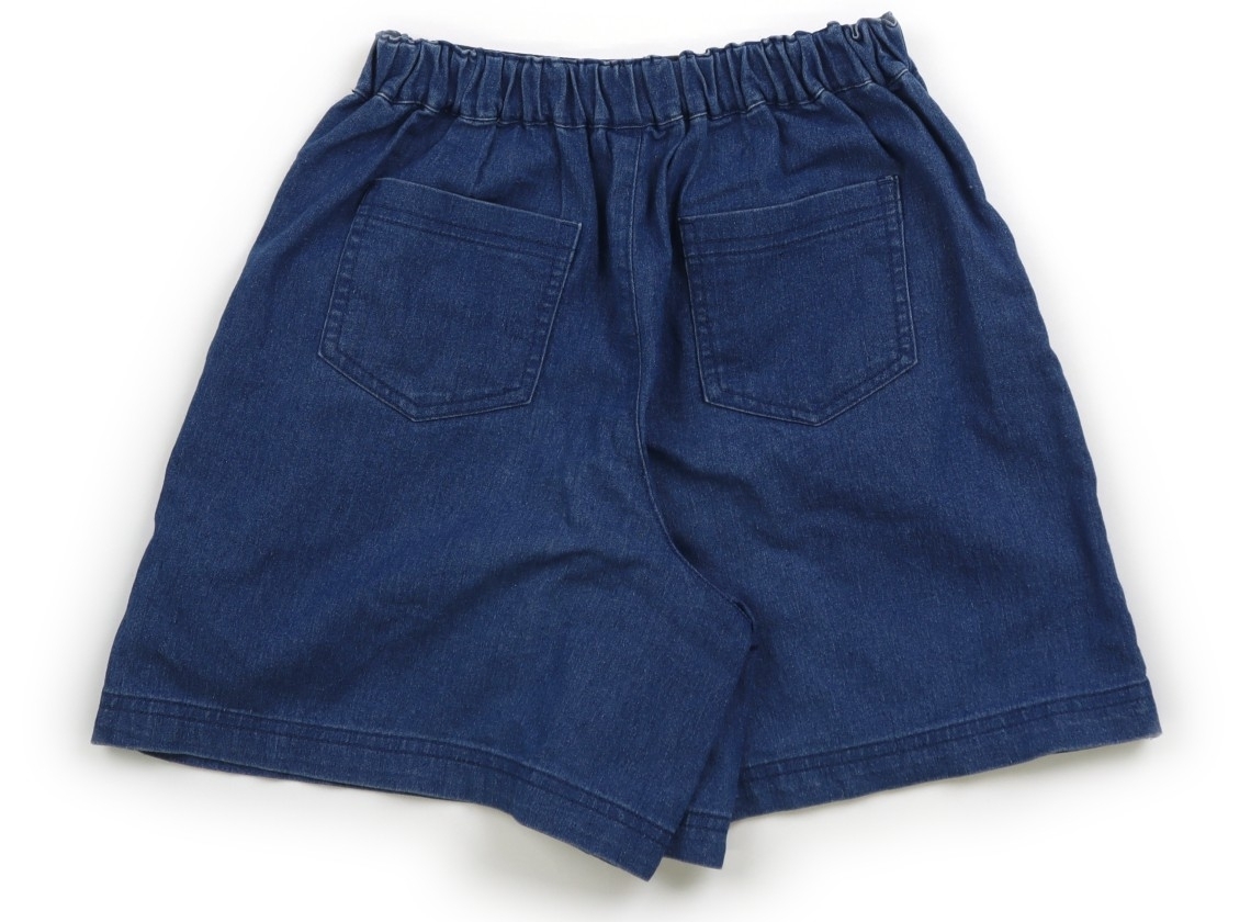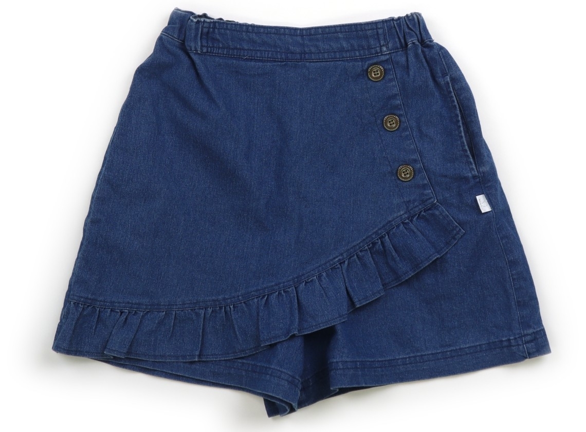 ストレッチ性のあるデニム生地です。前は巻きスカート風デザインです。後ろウエストにサイズ調整ゴムが付いています。目立つ汚れはありません。