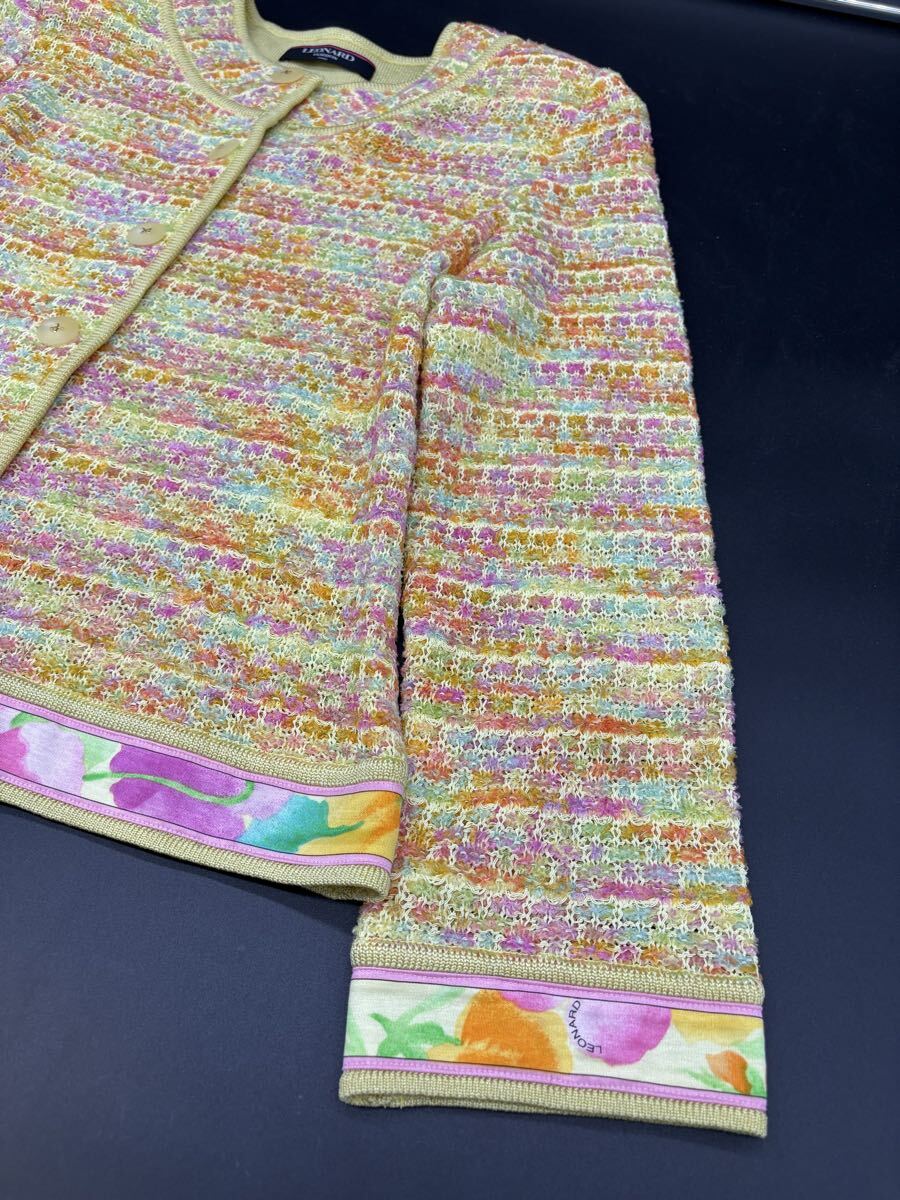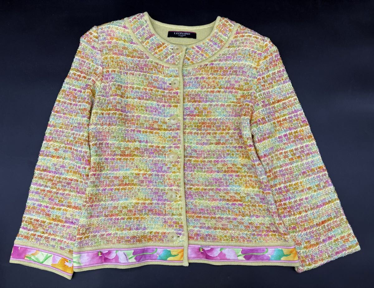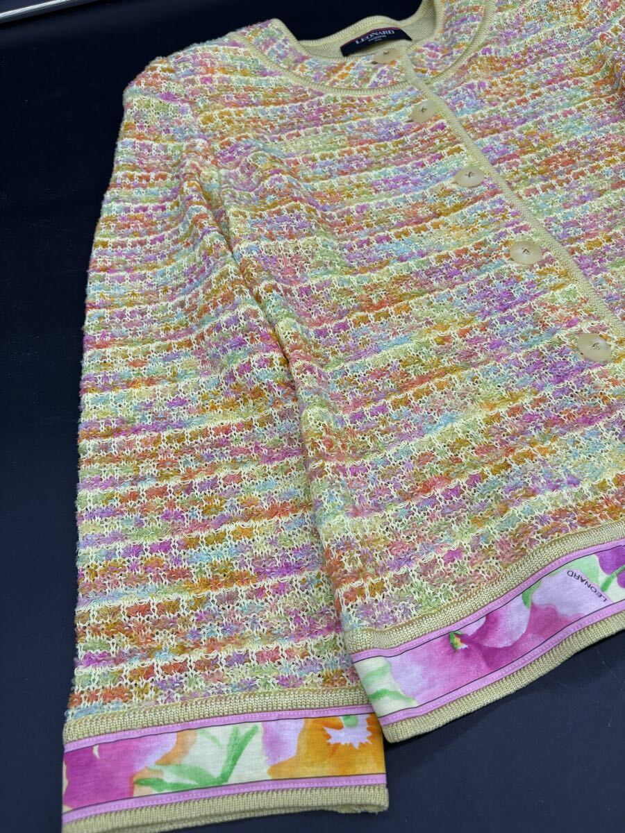 【極美品】LEONARD FASHION(レオナール ファッション)カーディガン ニットカーディガン 長袖 トップス カラフル 花柄 サイズLL