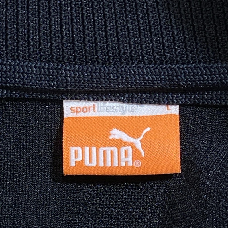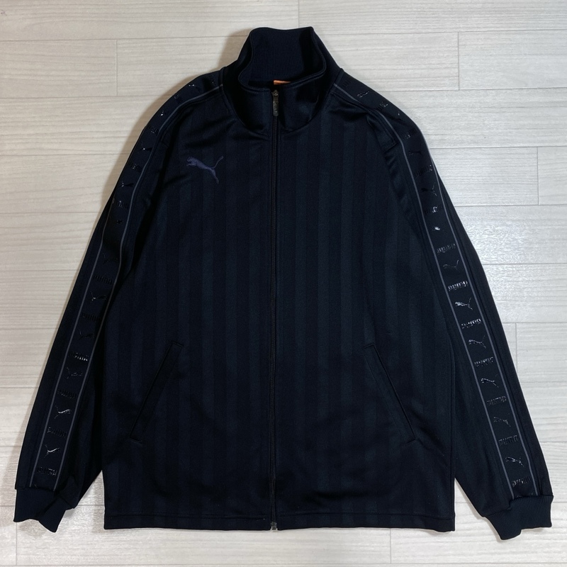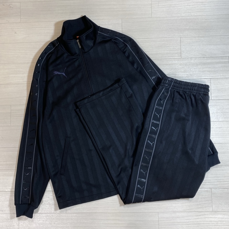 PUMA/プーマ/ジャカードストライプ/ビッグロゴプリント/トラックスーツ/トラックジャケット+トラックパンツ/オールブラック/サイドライン