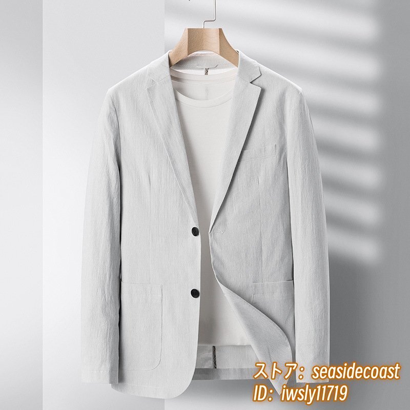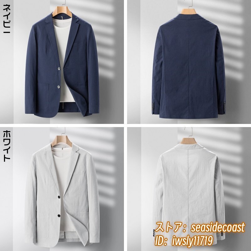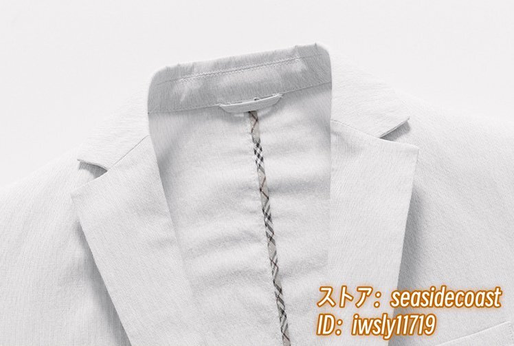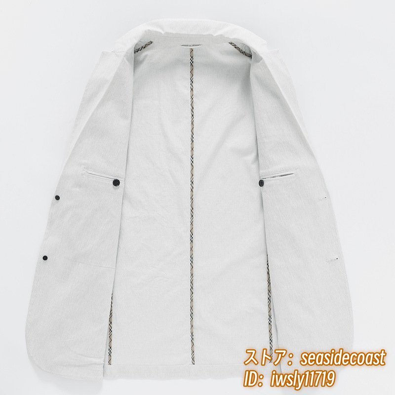★春・夏最適♪ テーラードジャケット メンズ ブレザー ピンヘッド【美品】清涼ジャケットコットン素材 涼しい 快適 サマー ホワイト XL