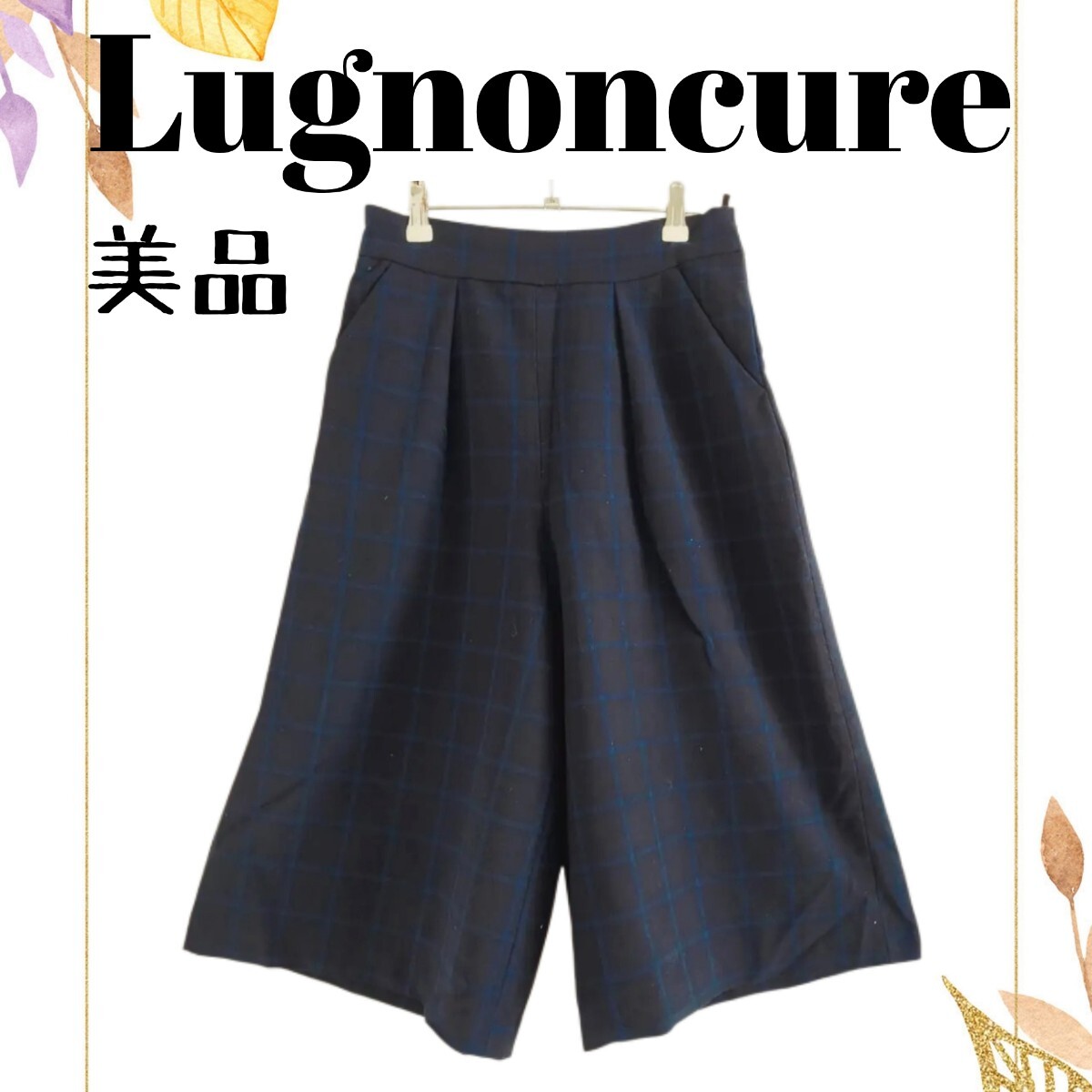 美品 Lugnoncure ルノンキュール ネイビー チェックワイドパンツ