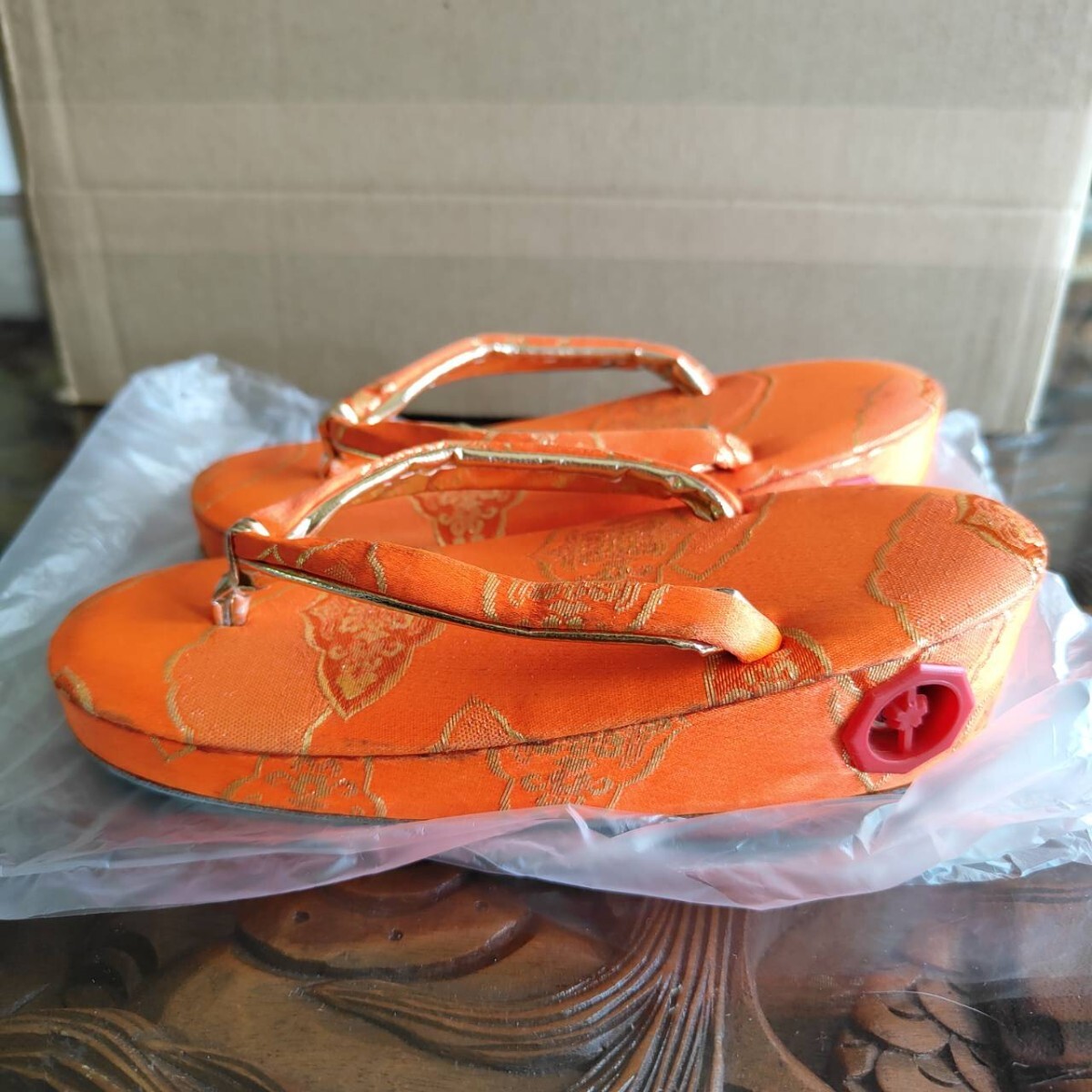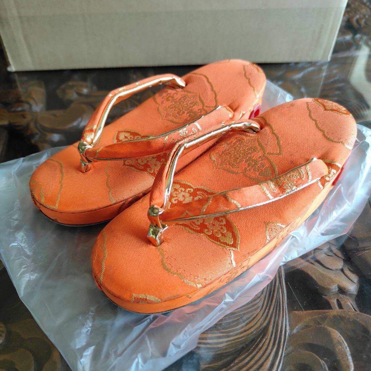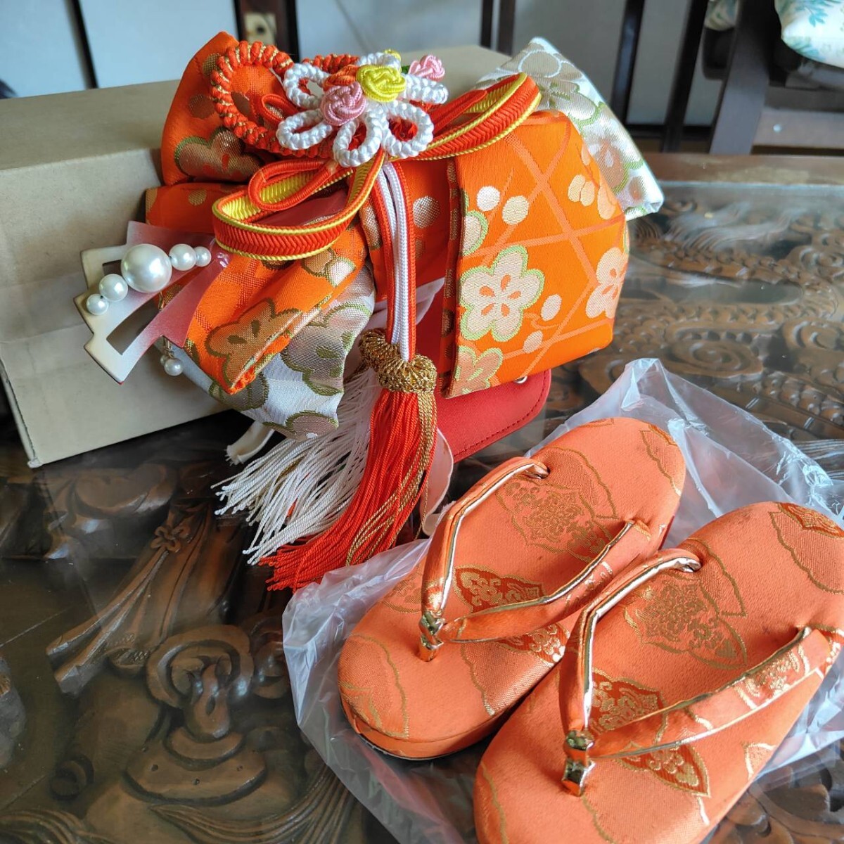 ・帯に目立つ汚れ等は見られませんが、草履は汚れ、型崩れが見られます。