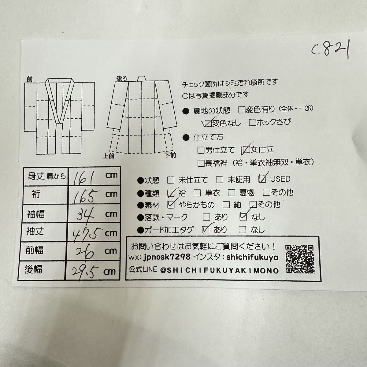 【七福】c821 付け下げ 刺繍 正絹 袷仕立て 着物 逸品 身丈 約161cm 裄 165約cm