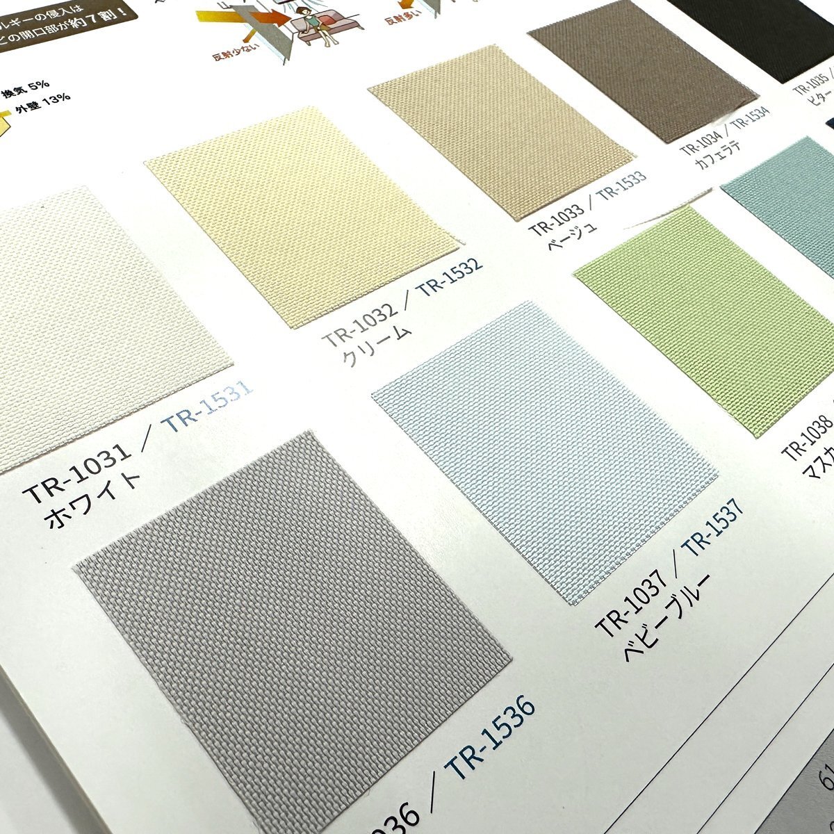 • 生地No.と色名:TR-○○○○ 〇〇〇〇色