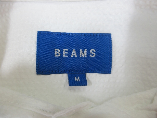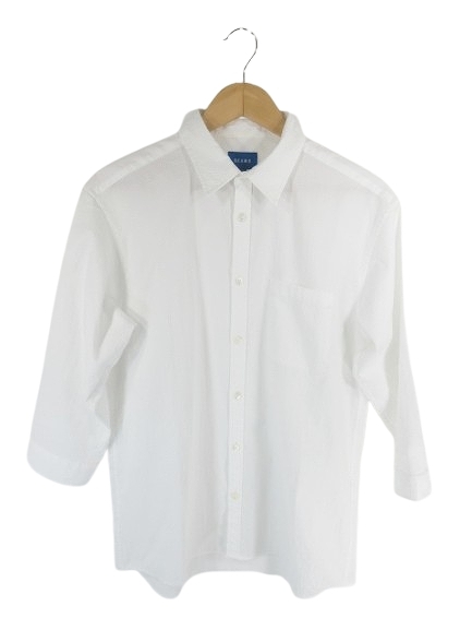 ビームス BEAMS シャツ カジュアル 七分袖 胸ポケット 無地 ホワイト Mサイズ QQQ メンズ