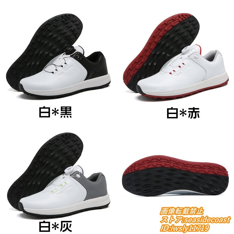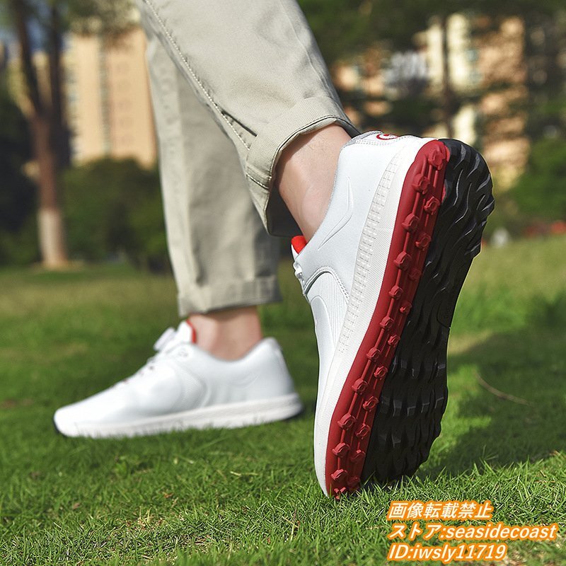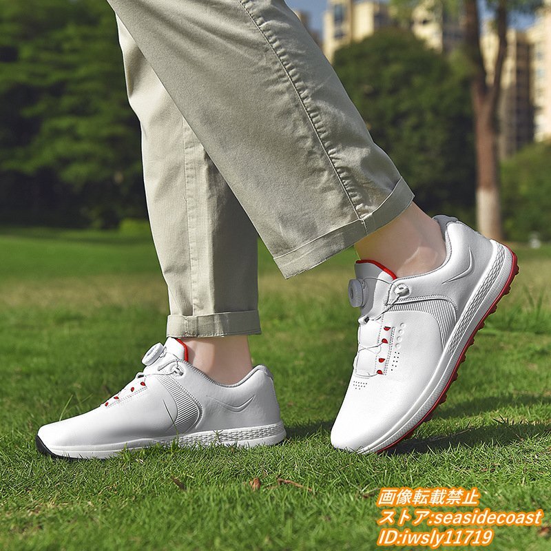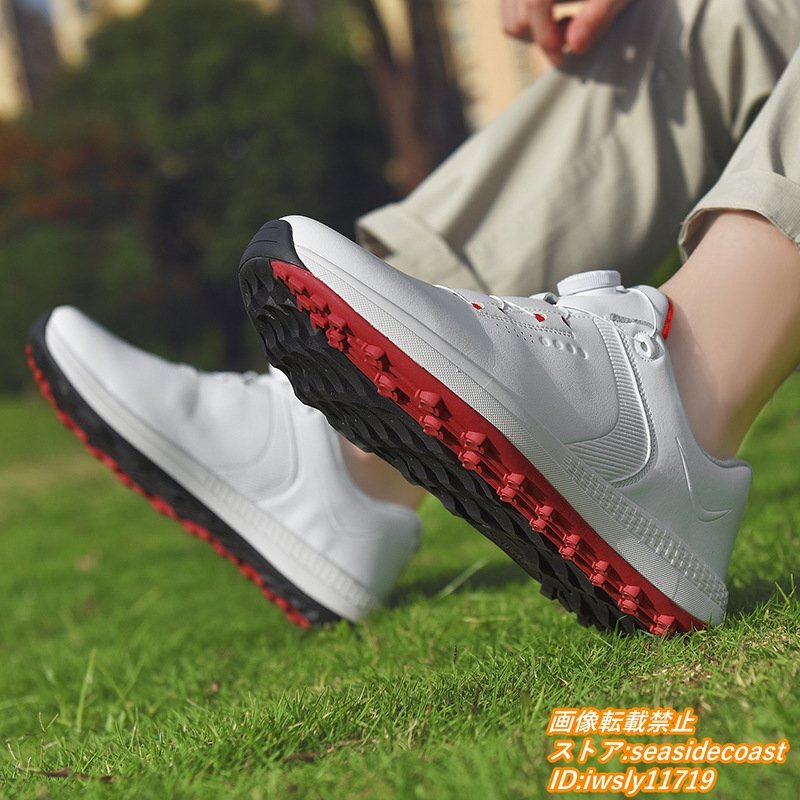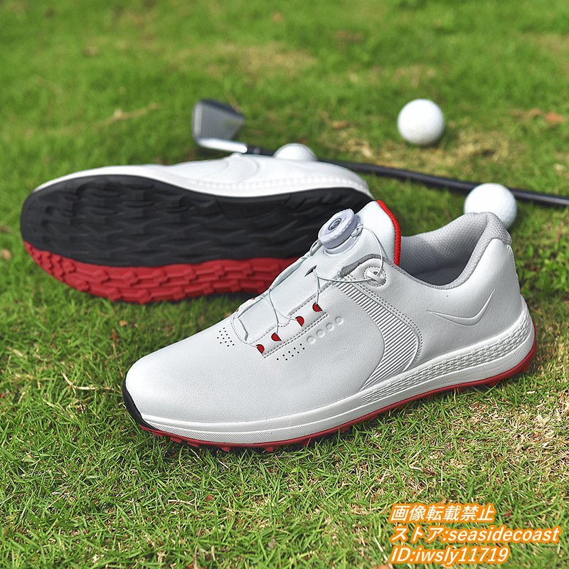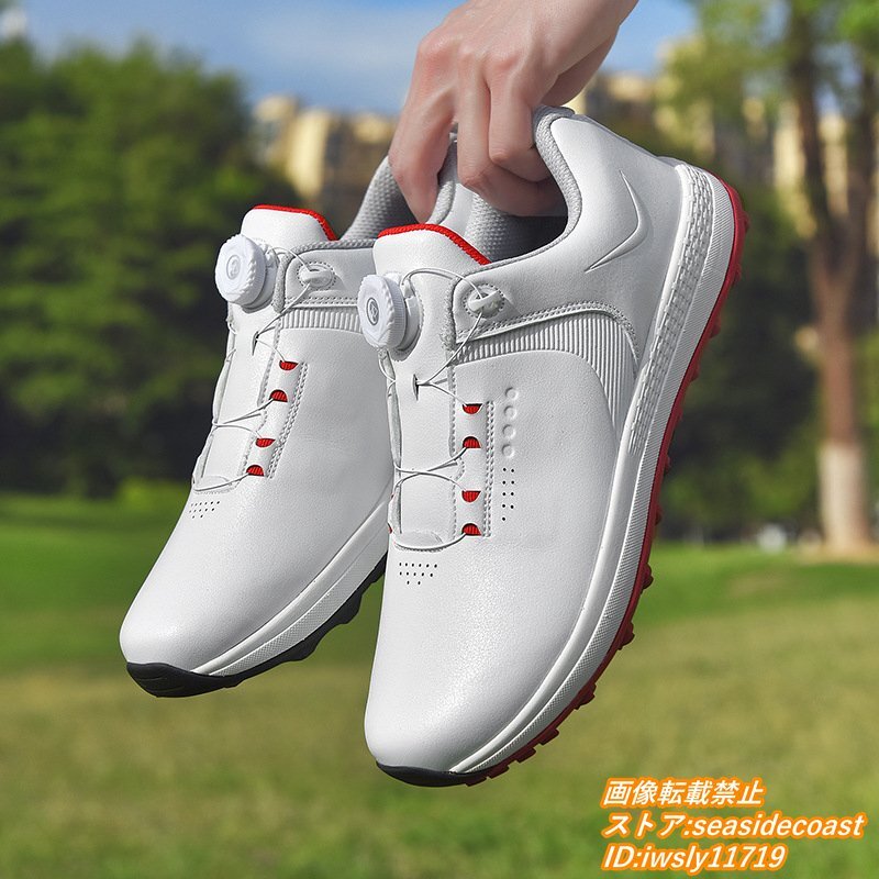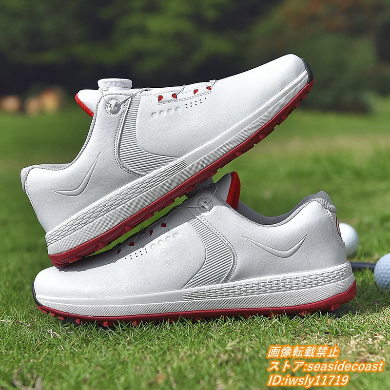 高級品 ゴルフシューズ ダイヤル式 運動靴 新品 メンズ 幅広い フィット感 軽量 スポーツシューズ 防水 防滑 耐磨 弾力性 白*赤 27.0cm