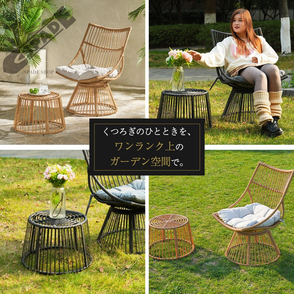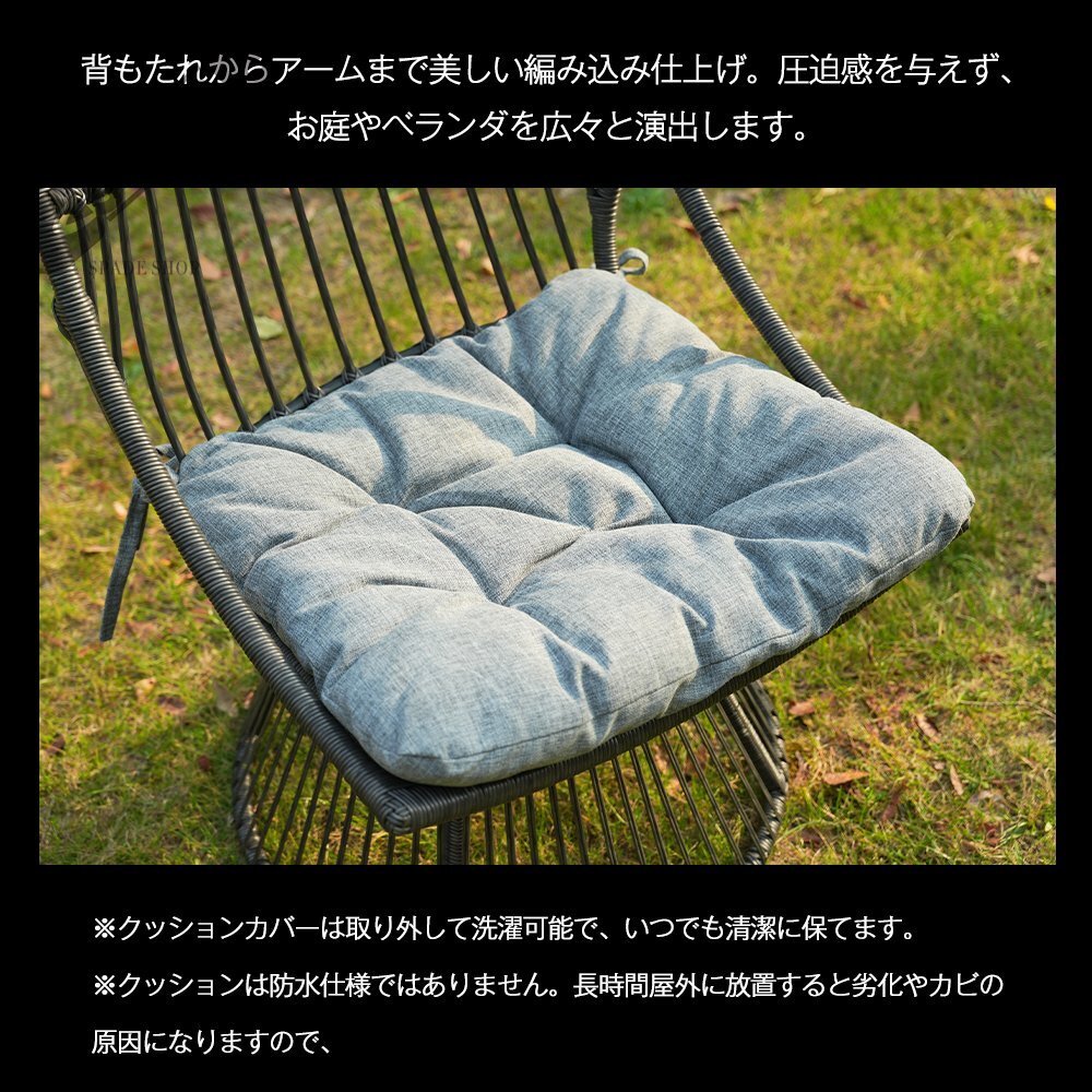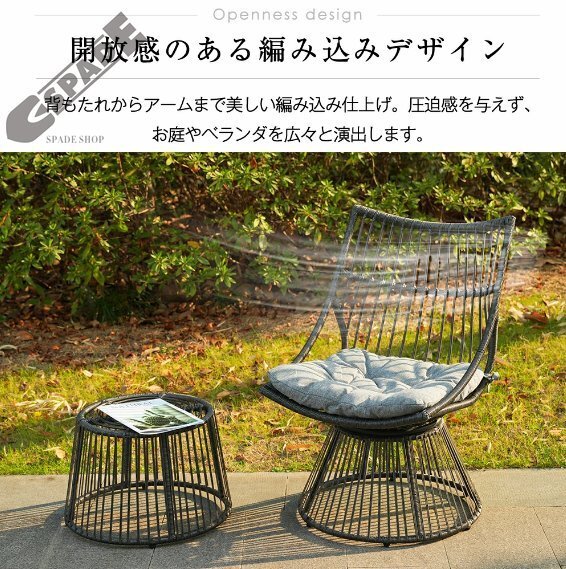• 【開放感のある編み込みデザイン】背もたれからアームまで美しい編み込み仕上げ。圧迫感を与えず、お庭やベランダを広々と演出します。