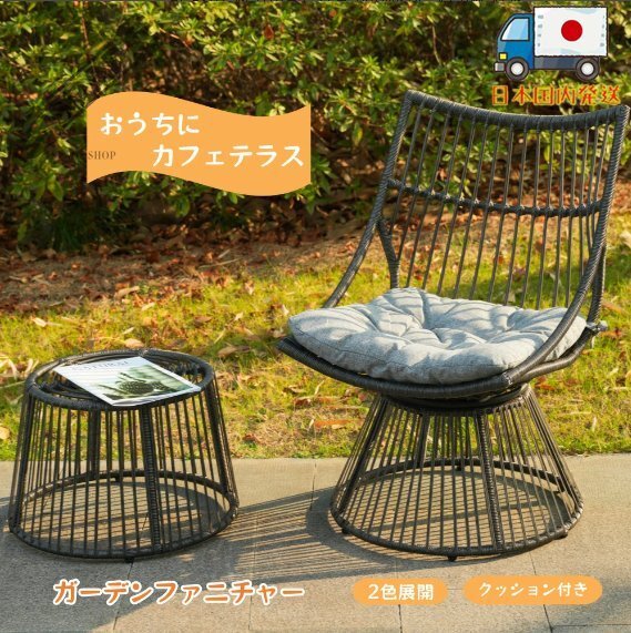 【国内発送】ガーデンファニチャー テーブル 2点セット ガーデン ベランダ ガーデンチェア セットテーブルセット クッション付