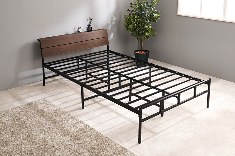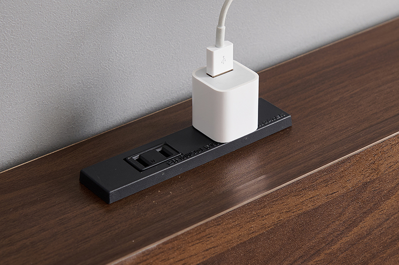 ヘッドボードは木目調の傾斜があるパネル仕様です。