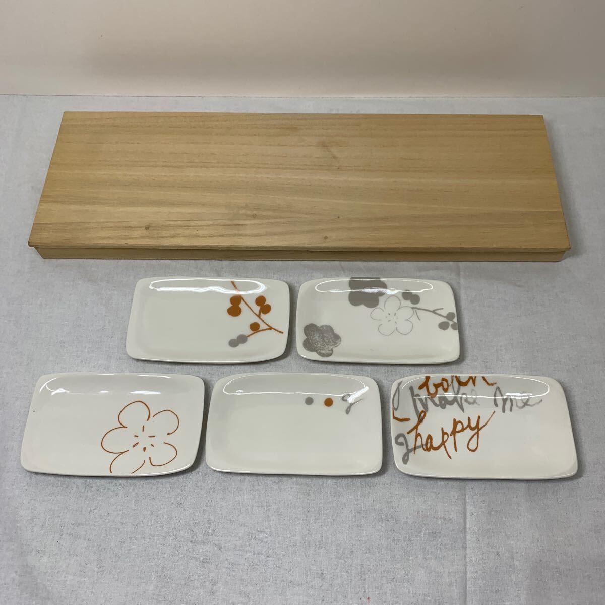 ★大阪/店舗受け取り可★未使用 ART HOME アートホーム 食器 お皿 5枚組 柄違い 約11cm×6.5cm 高さ1cm 木箱入り★