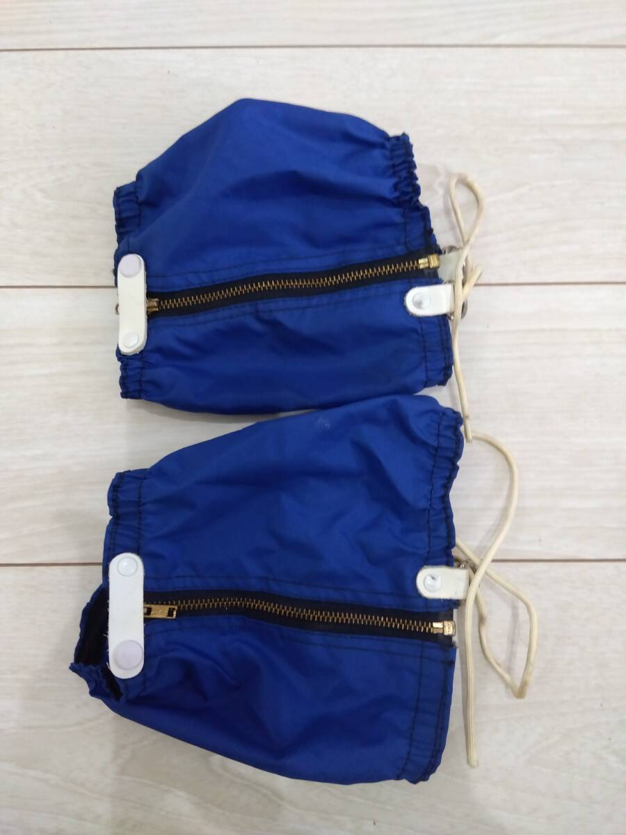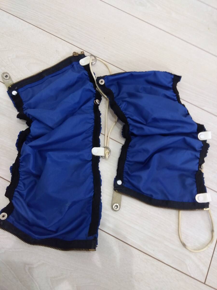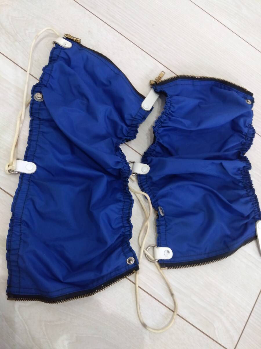 登山やハイキング時など野外を歩く時に靴の中に石などの異物が入るのを防ぐためのカバーです。短靴での野良仕事にも良いと思います。写真はチャックを締めたものと開いた時の裏表です。何回か使用したので紐に汚れが有りますが本体はきれいです。