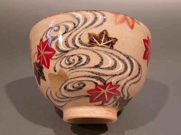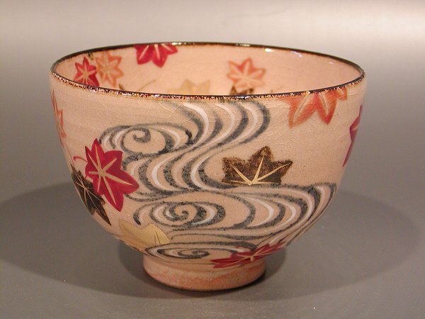 | ■茶道具 抹茶茶碗 乾山 流水に紅葉、 京都 山川嘉山作 | |