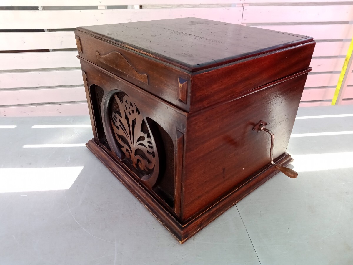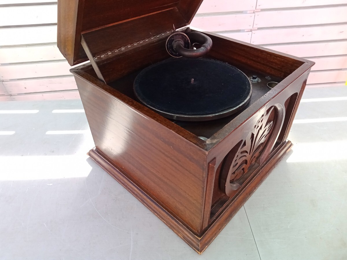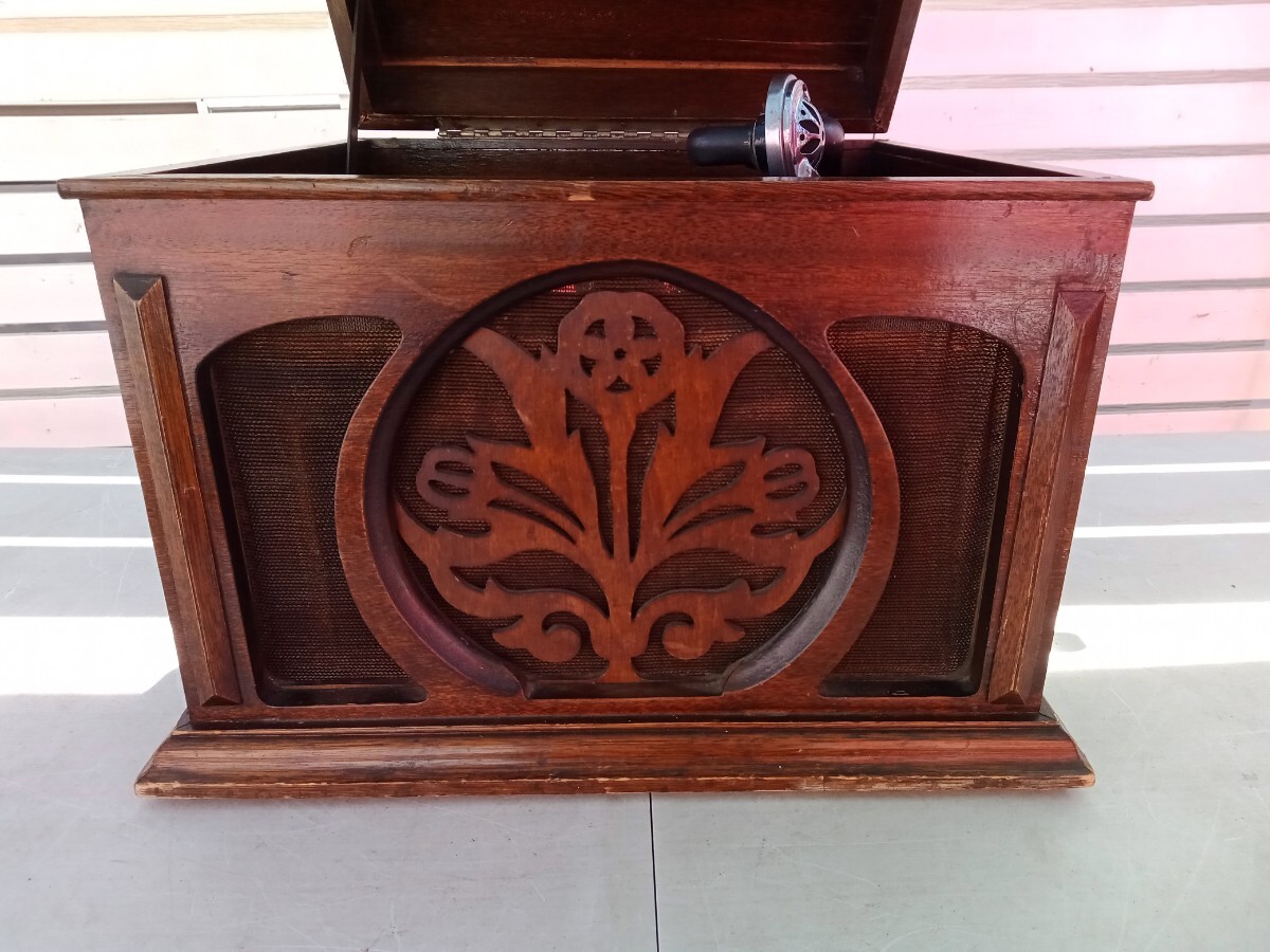★動作確認は、レバーにてゼンマイが巻けて、ターンテーブルが回転する、SP盤をかけての音出し、回転数の調節が出来るのは確認しました。その他の動作は未確認です。