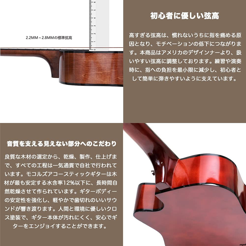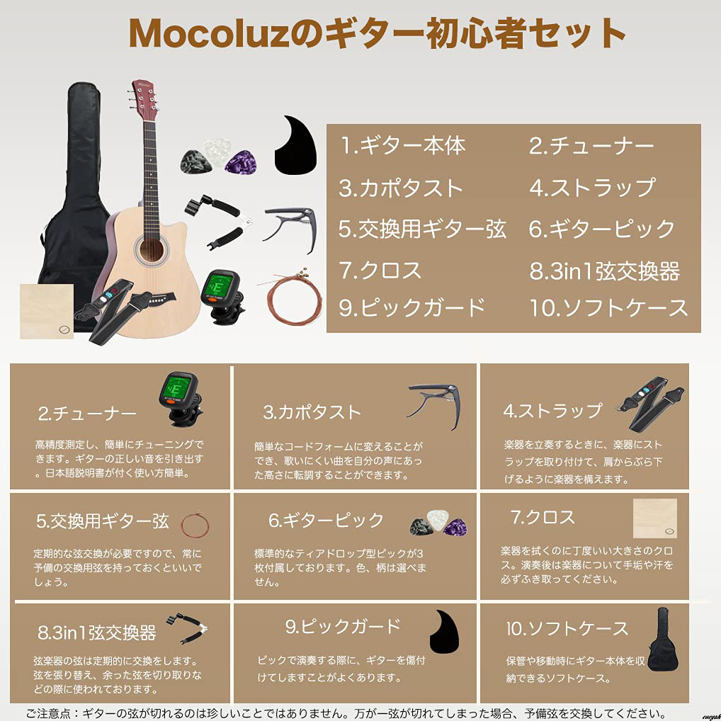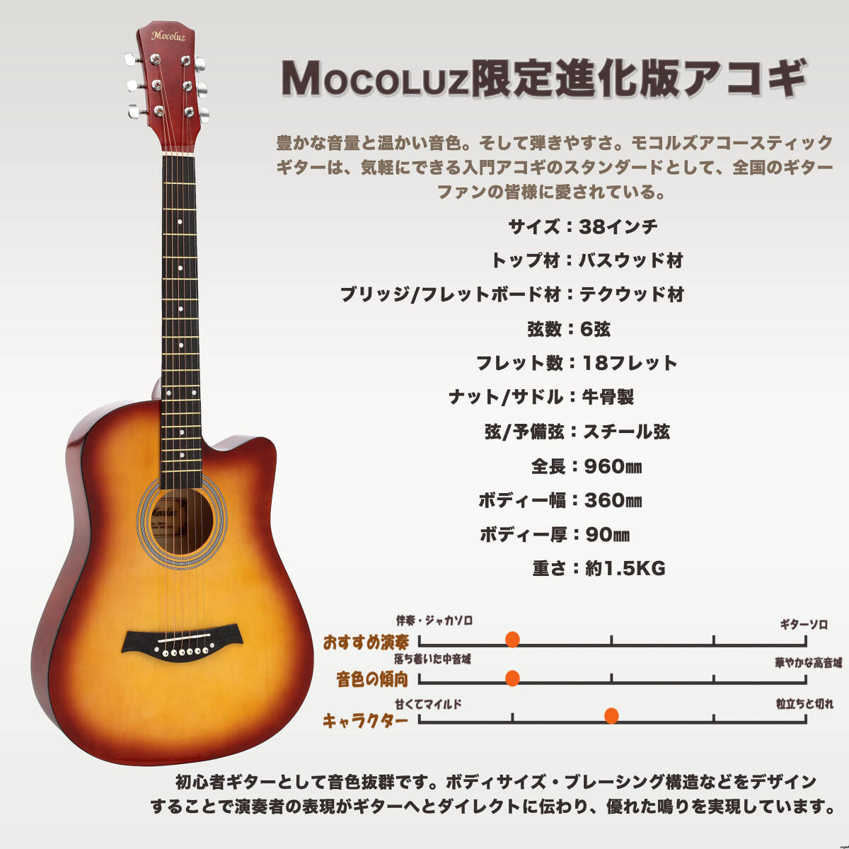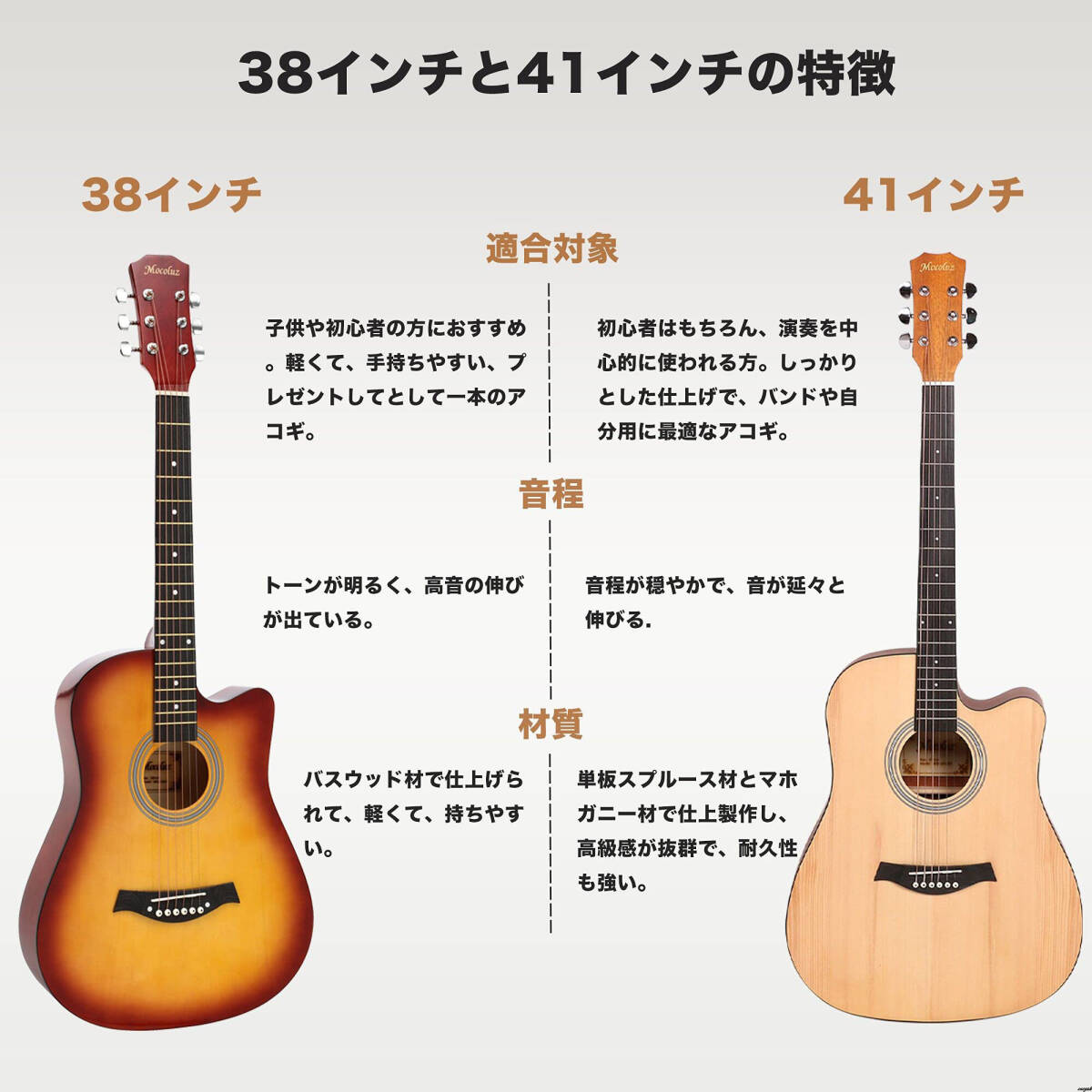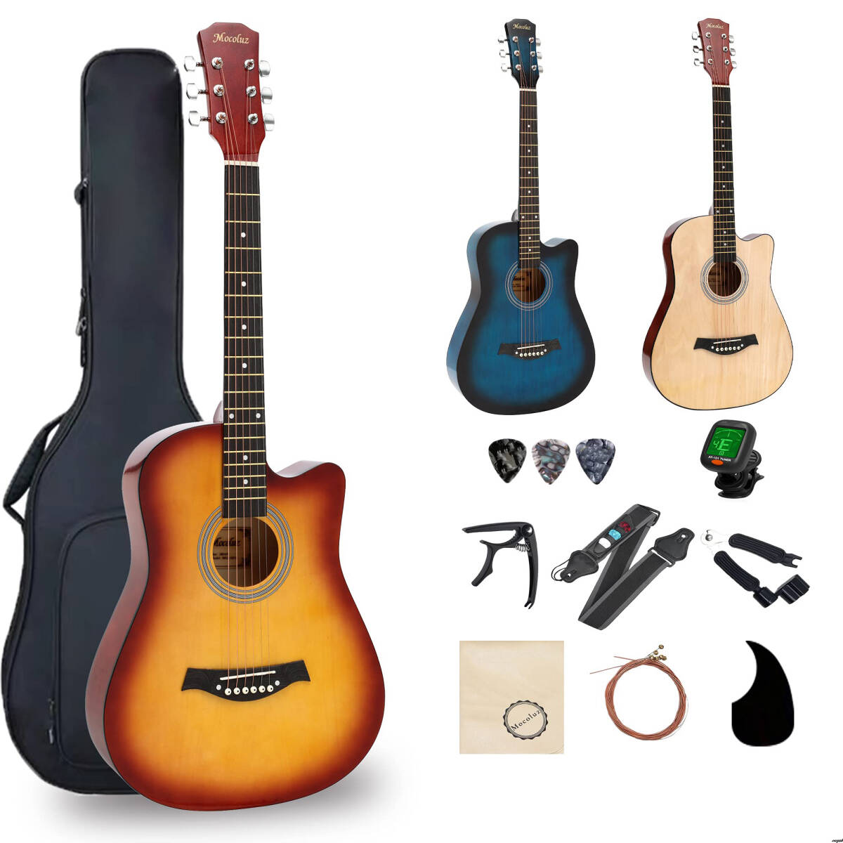 この38インチのアコースティックギターは、初心者に最適なセット商品です。